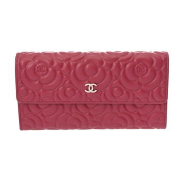 CHANEL Camellia Bifold Wallet, Pink, A82283, Women\'s Calfskin, Like New