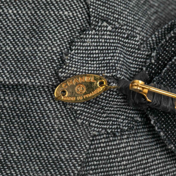 CHANEL Camellia Brooch in Black and Gold Denim with Plated Design for Women
