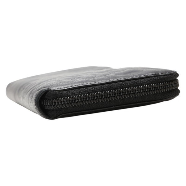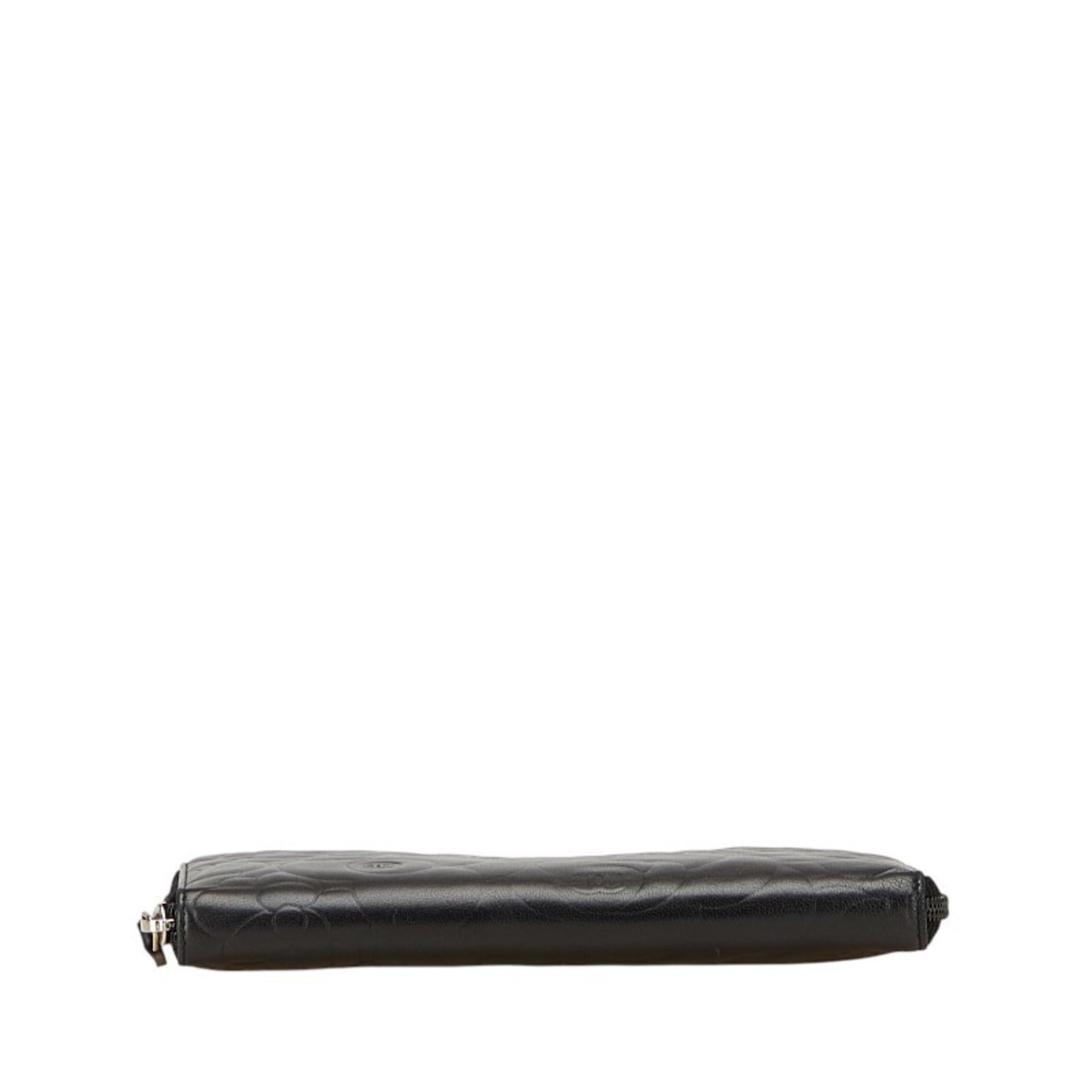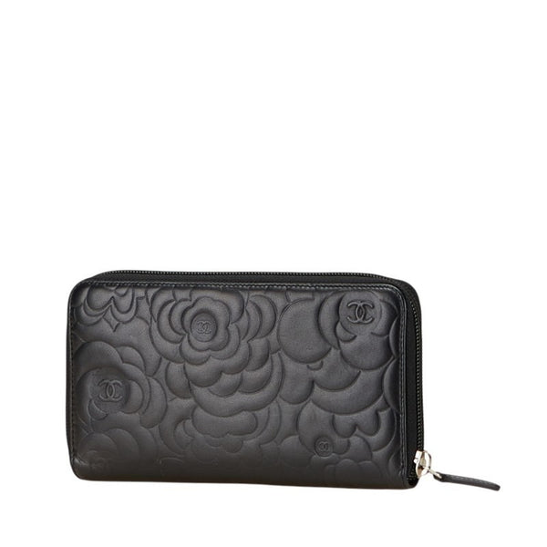 CHANEL Camellia Coco Mark Long Wallet with Round Zipper, Black Lambskin, Women\'s