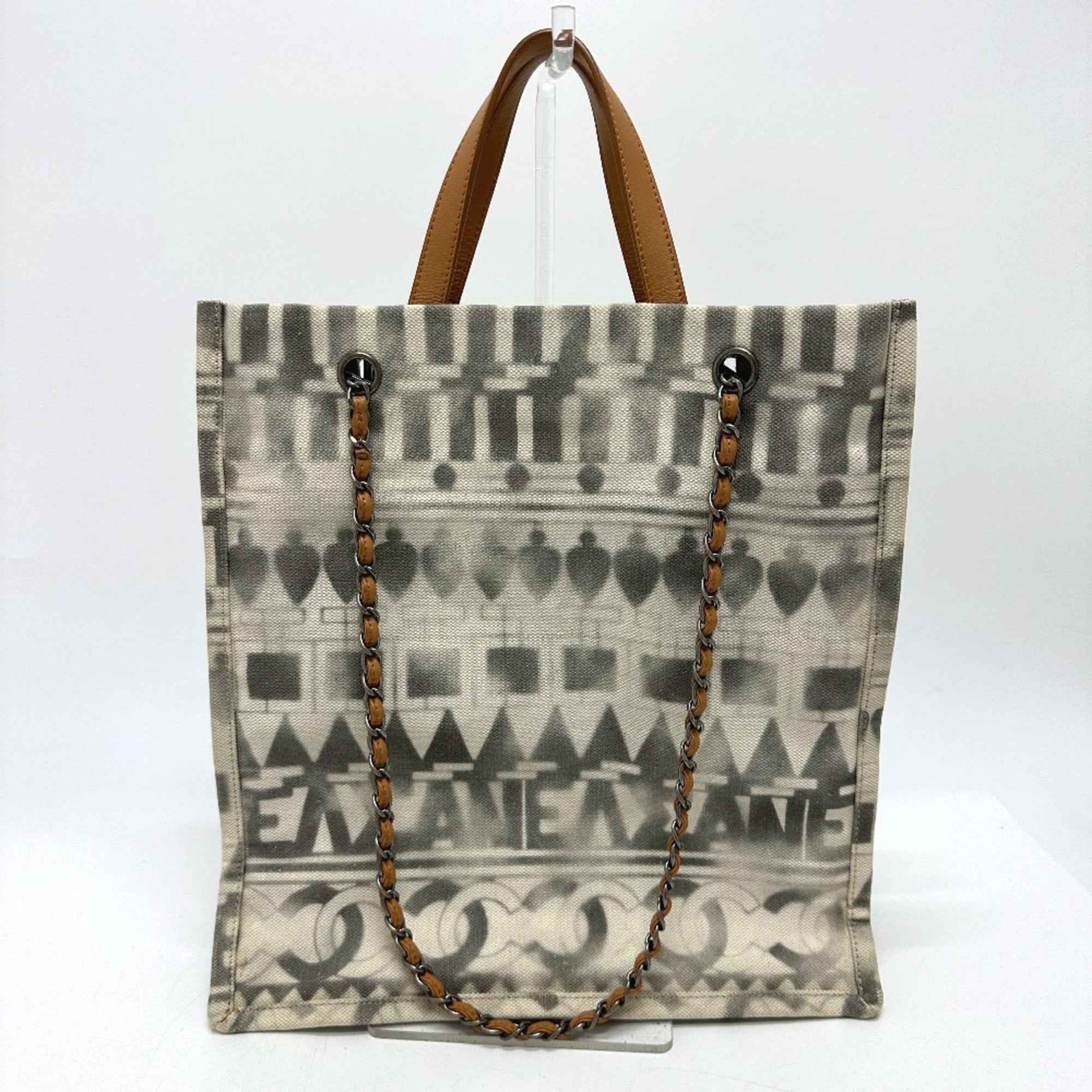 Chanel CC Mark 2WAY Bag Chain Tote Bag Shoulder Bag Beige