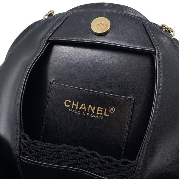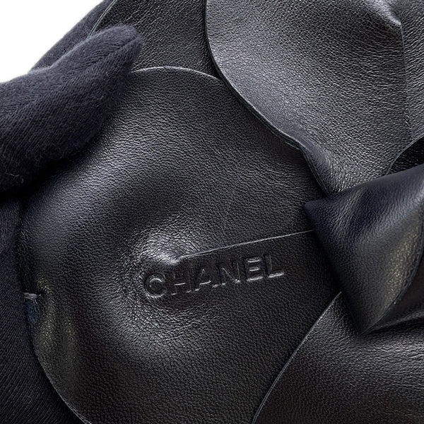 Chanel Chain Pochette Camellia Satin Coco Mark CHANEL Bag Black