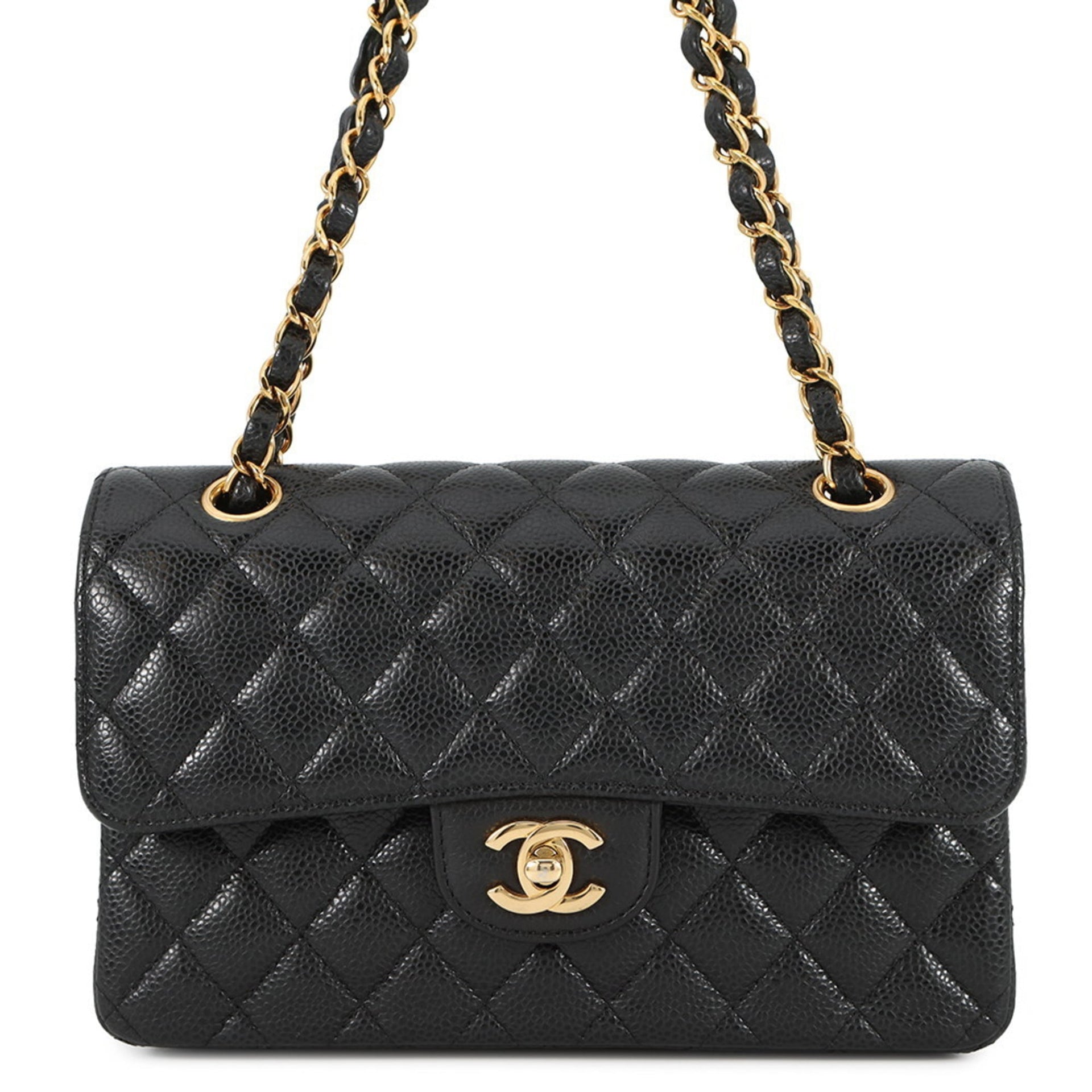 Chanel Chain Shoulder Bag Matelasse 23 Coco Mark Double Caviar Skin A01113 CHANEL Black