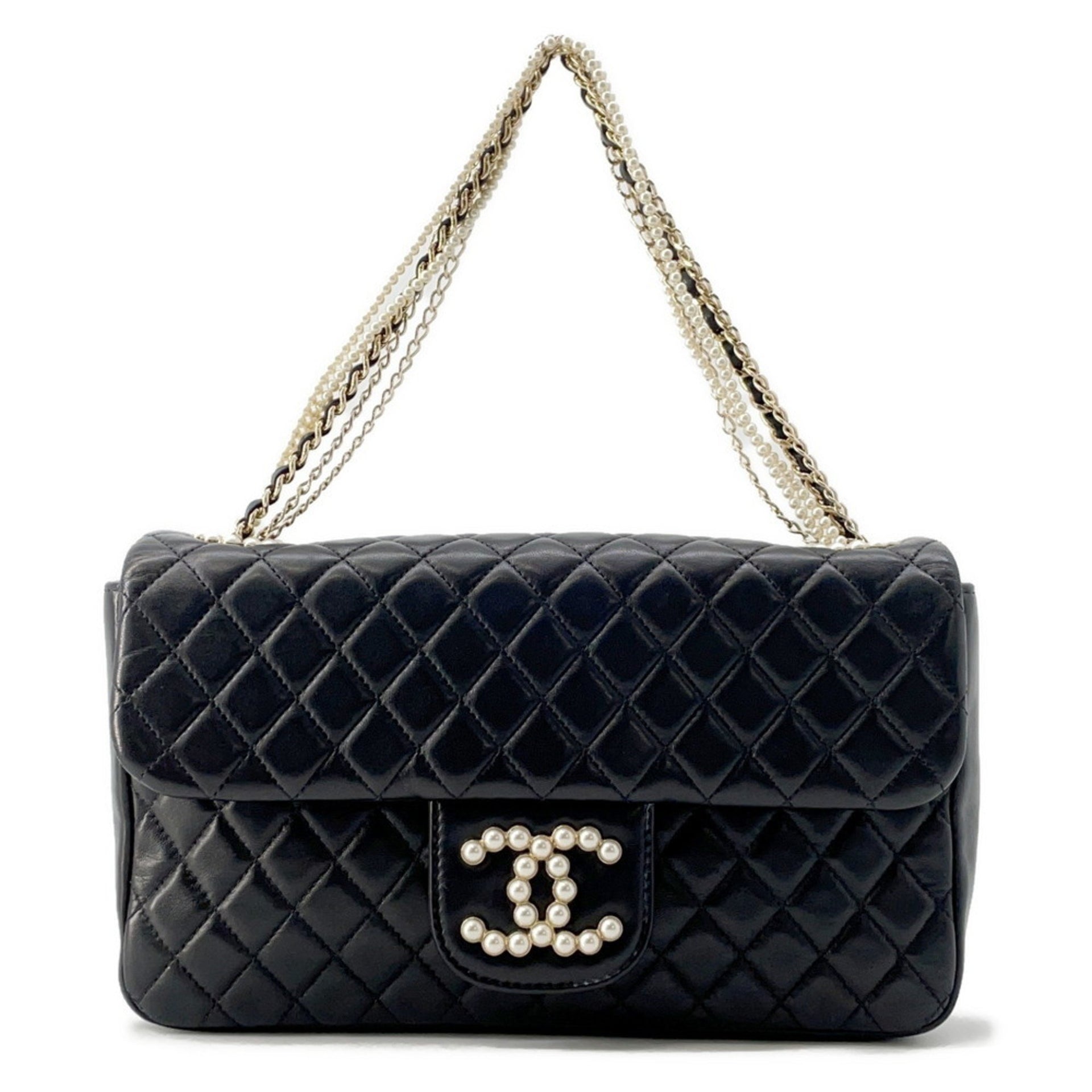 Chanel Chain Shoulder Bag Matelasse Coco Mark Fake Pearl A39011 CHANEL Black