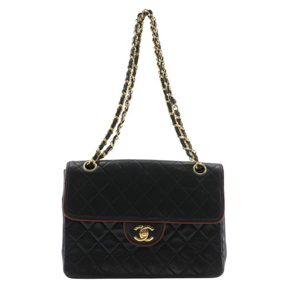 CHANEL Chain Shoulder Bag, Matelasse, Double Chain, Lambskin, Black, Turnlock, ChainShoulder, Women\'s