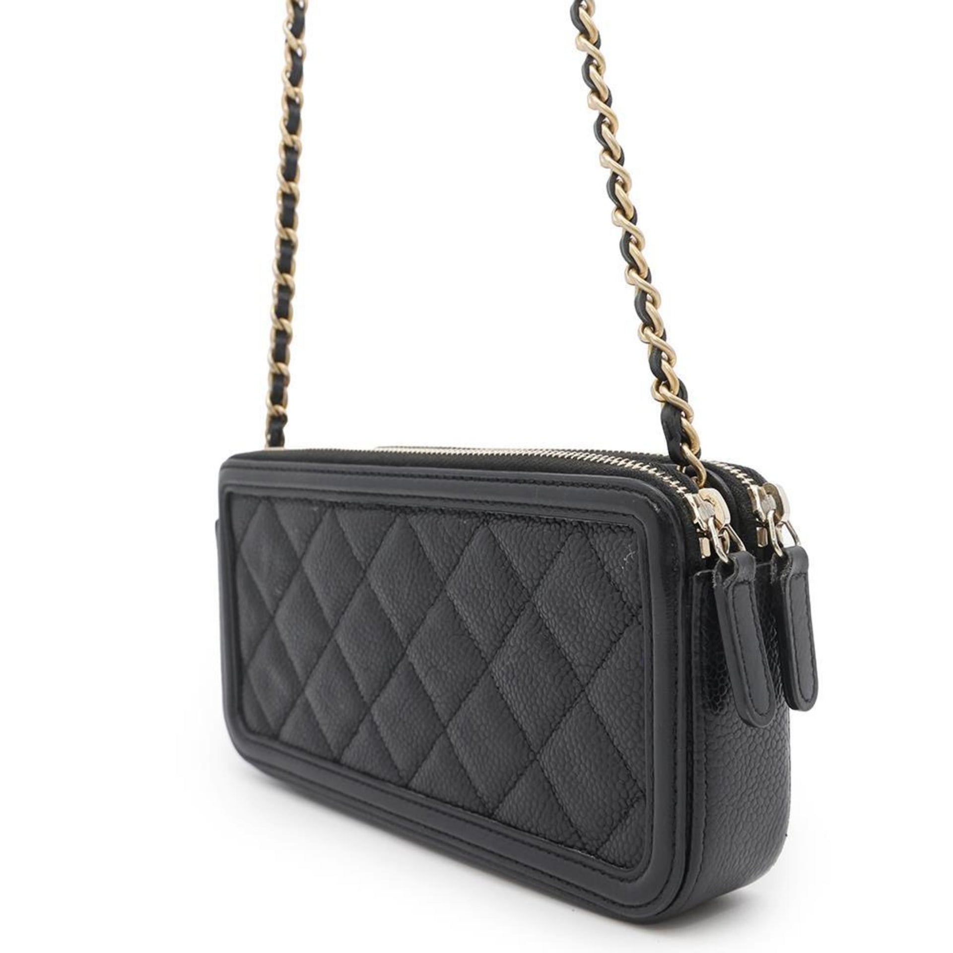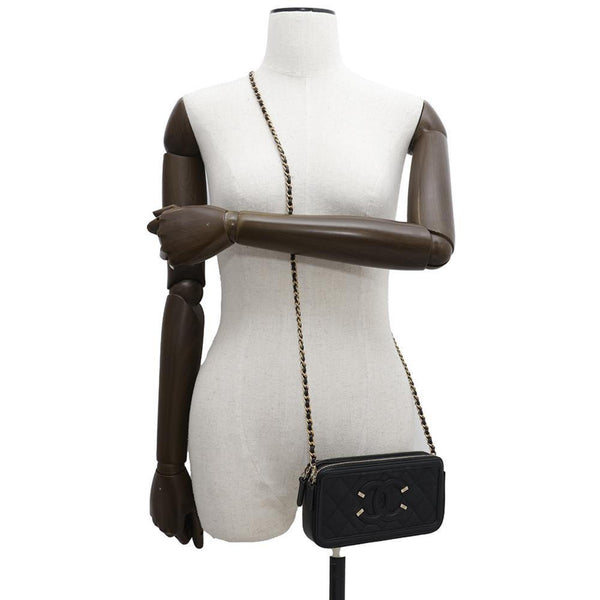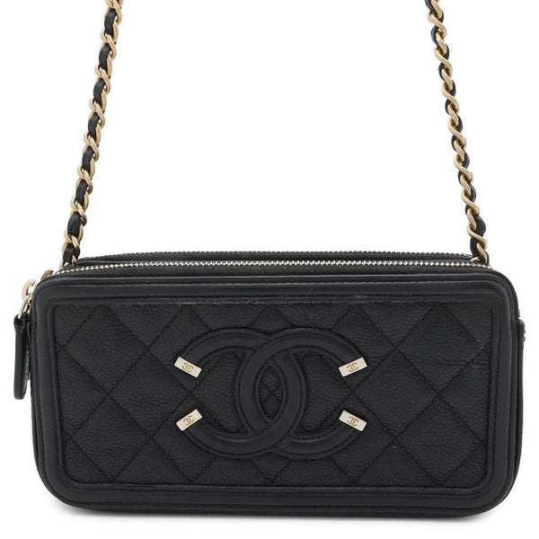 Chanel Chain Wallet CC Filigree Caviar Skin A84450 CHANEL Long Black