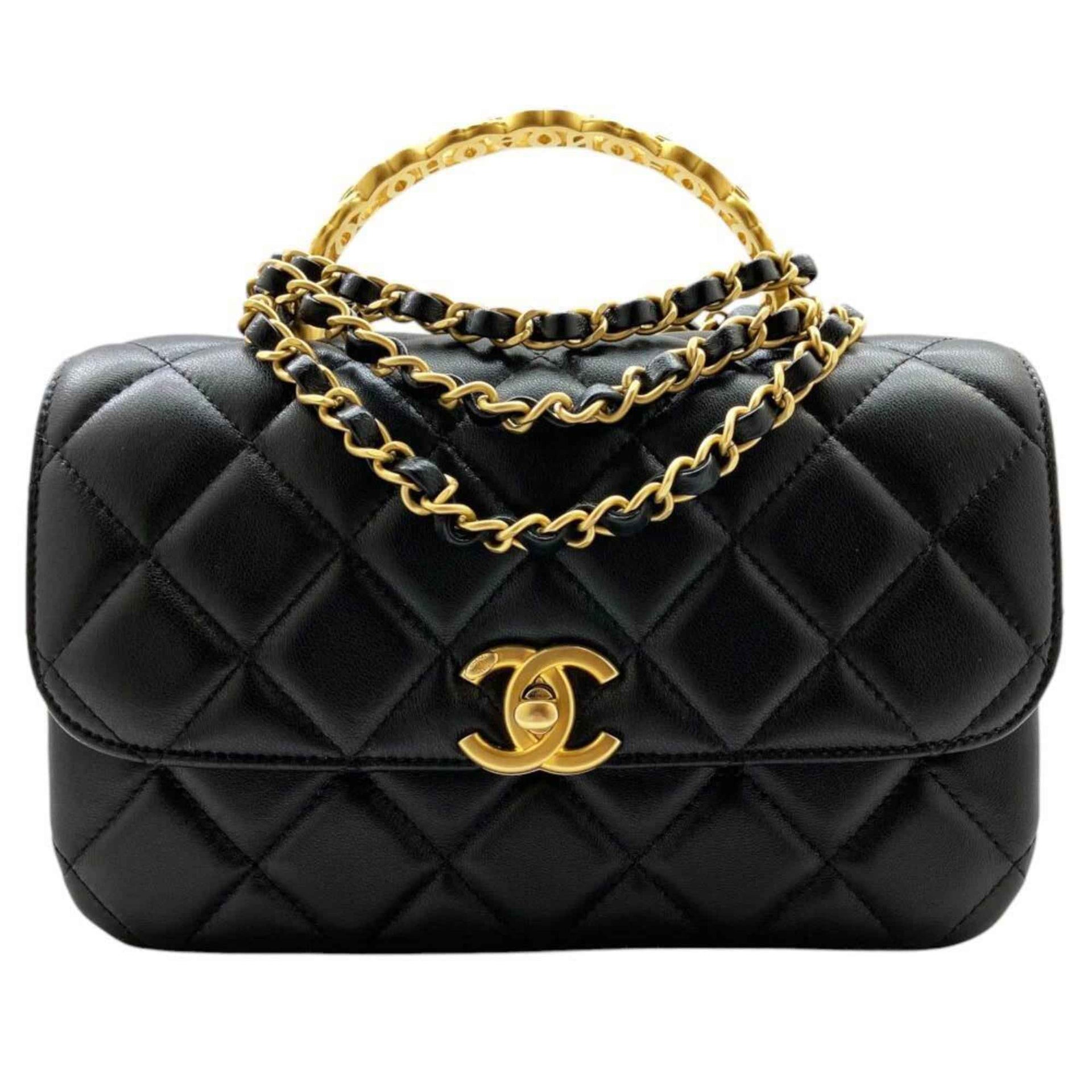 CHANEL Chanel Matelasse Small Lambskin Black Shoulder Bag Chain Handbag CC Women\'s