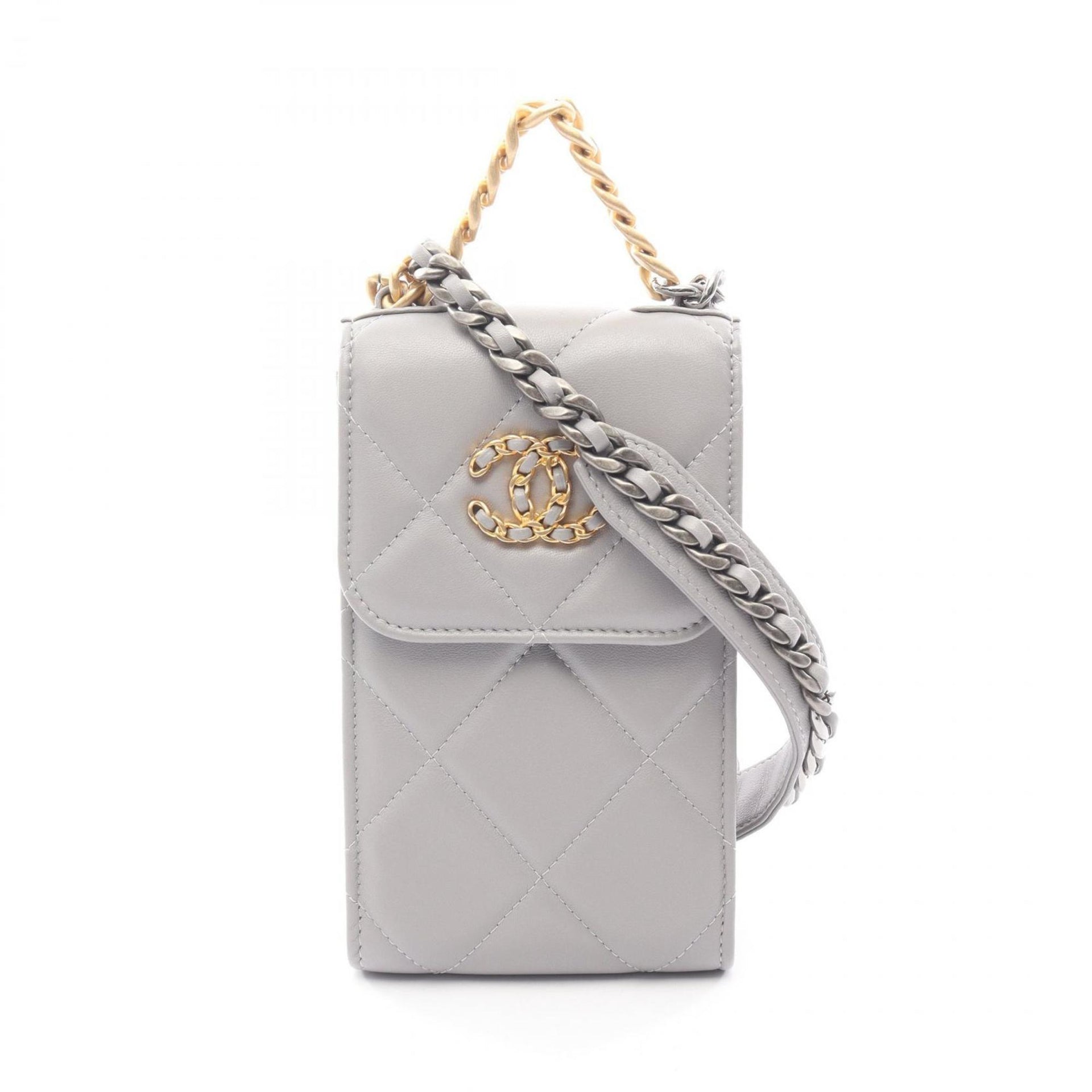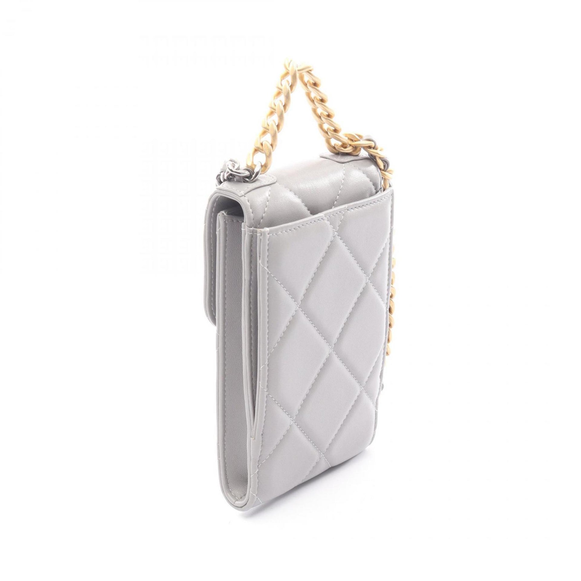 CHANEL CHANEL19 Matelasse Phone Holder Shoulder Bag, Leather, Women\'s, Gray