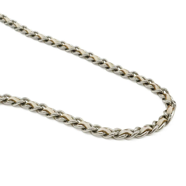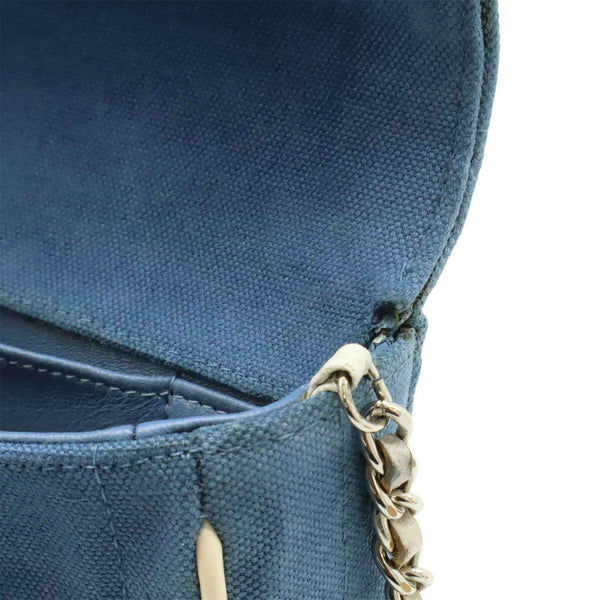 CHANEL Chocobar Chain Shoulder Bag Canvas Leather Blue Ivory