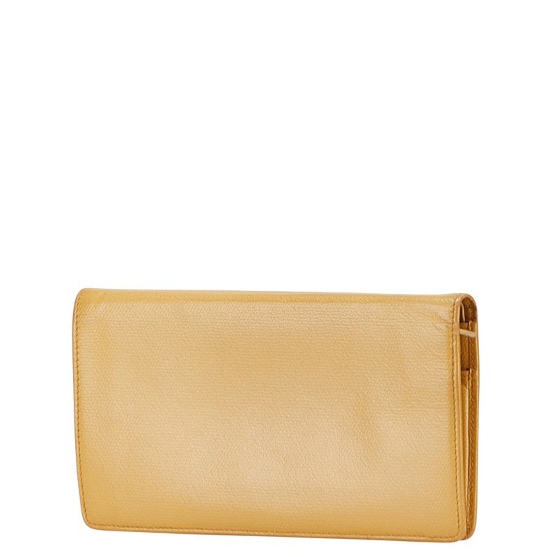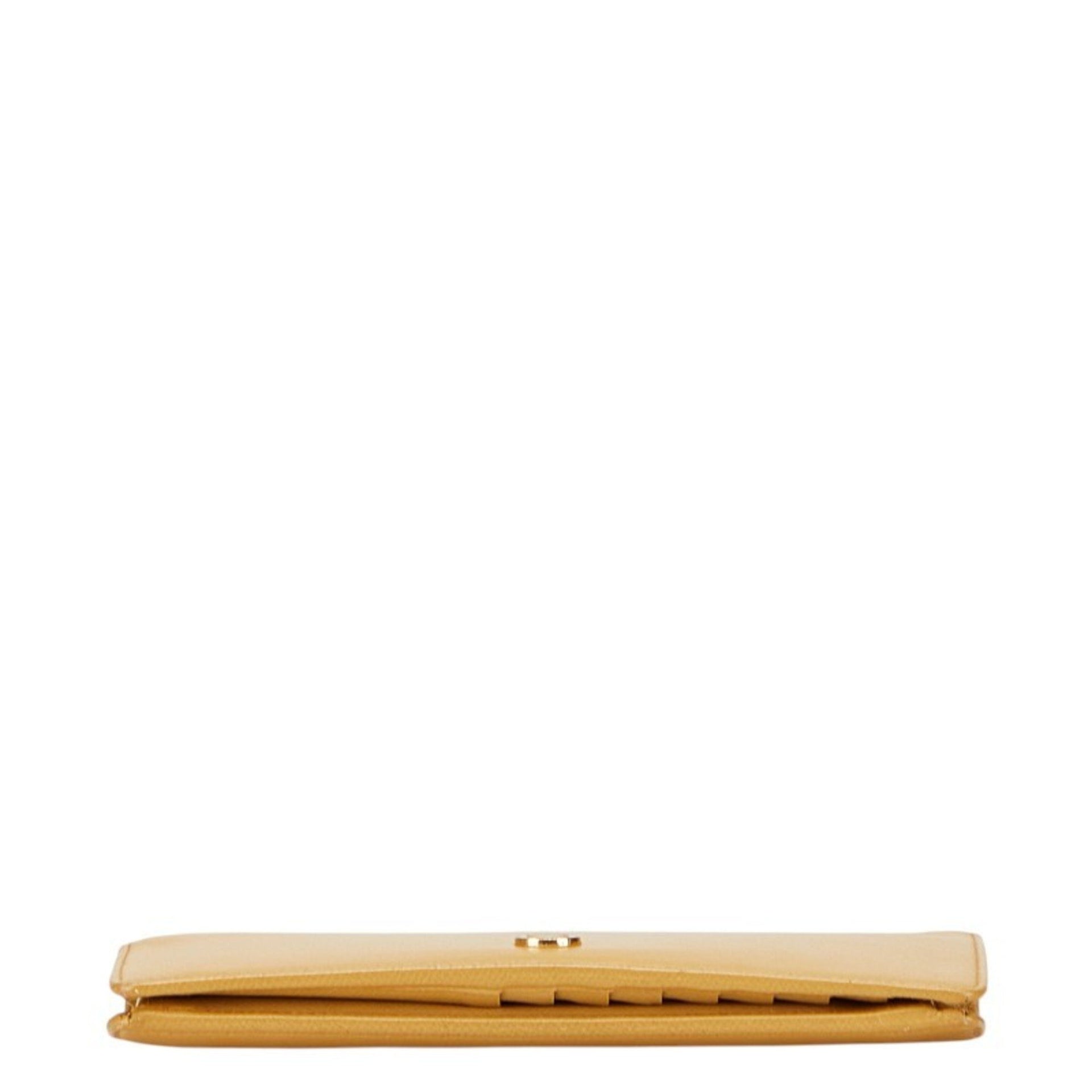 Chanel Coco Button Long Wallet Yellow Leather Women\'s CHANEL