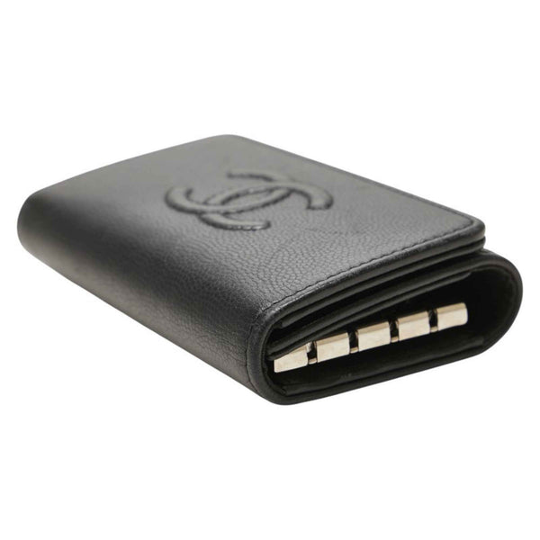 CHANEL Coco Mark 4-ring Key Case, Black Caviar Leather, Women's