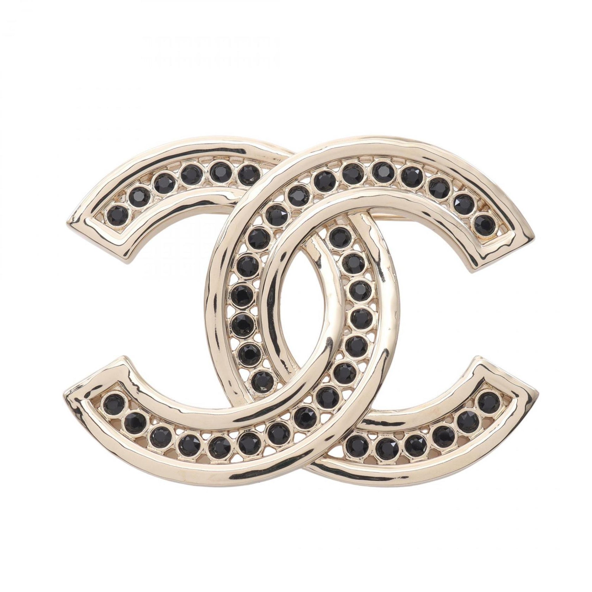 Chanel Coco Mark Brooch with Gold Plated Rhinestones, Women\'s, and Black