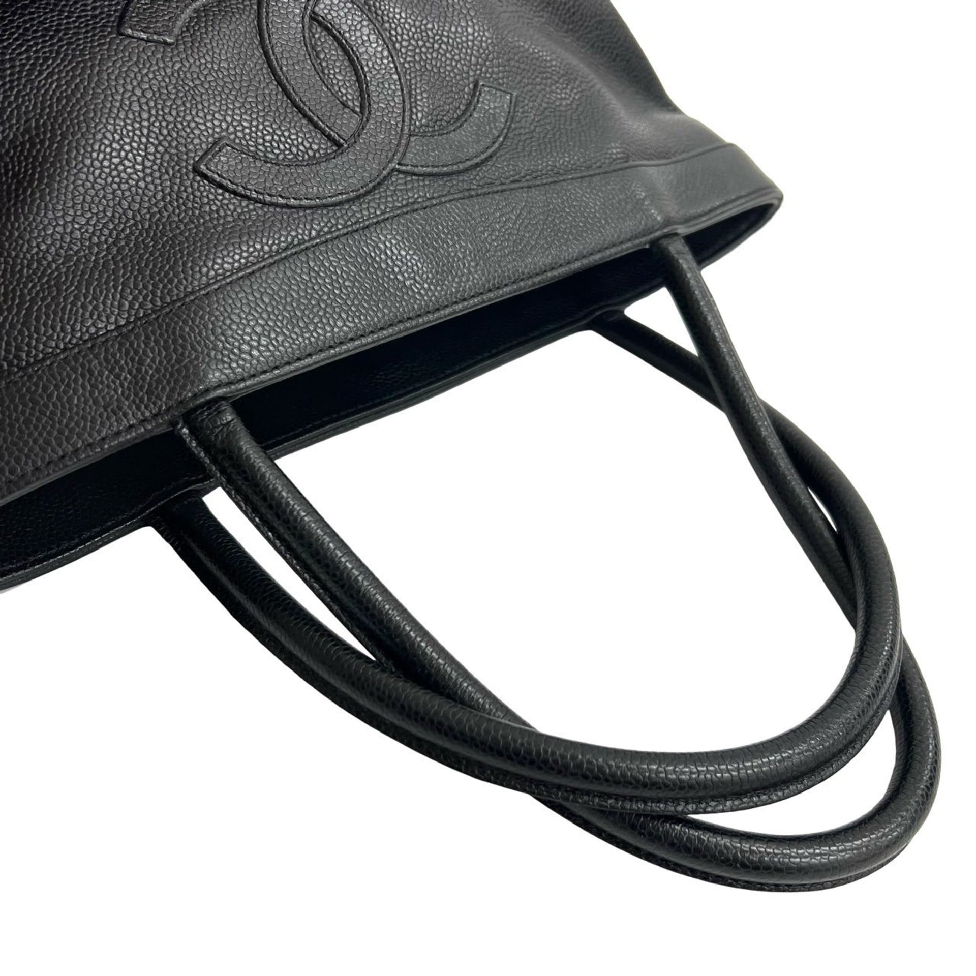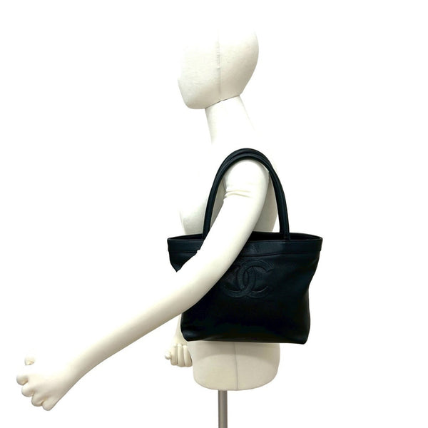 CHANEL Coco Mark Caviar Skin Tote Bag Handbag Black 36884