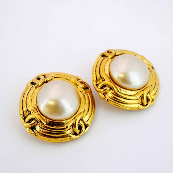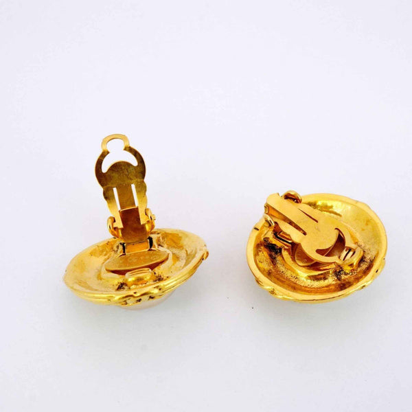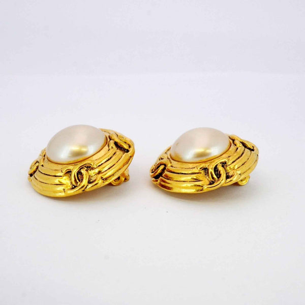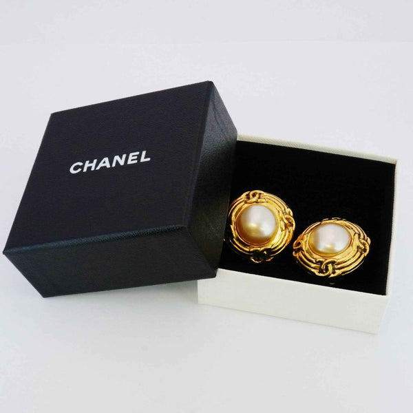 Chanel Coco Mark Circle Earrings with GP Plated Faux Pearls in Gold for Women (P1360055)