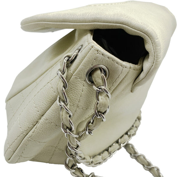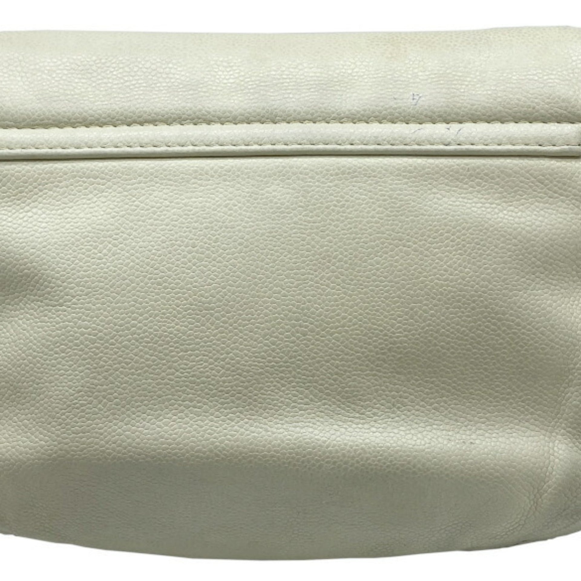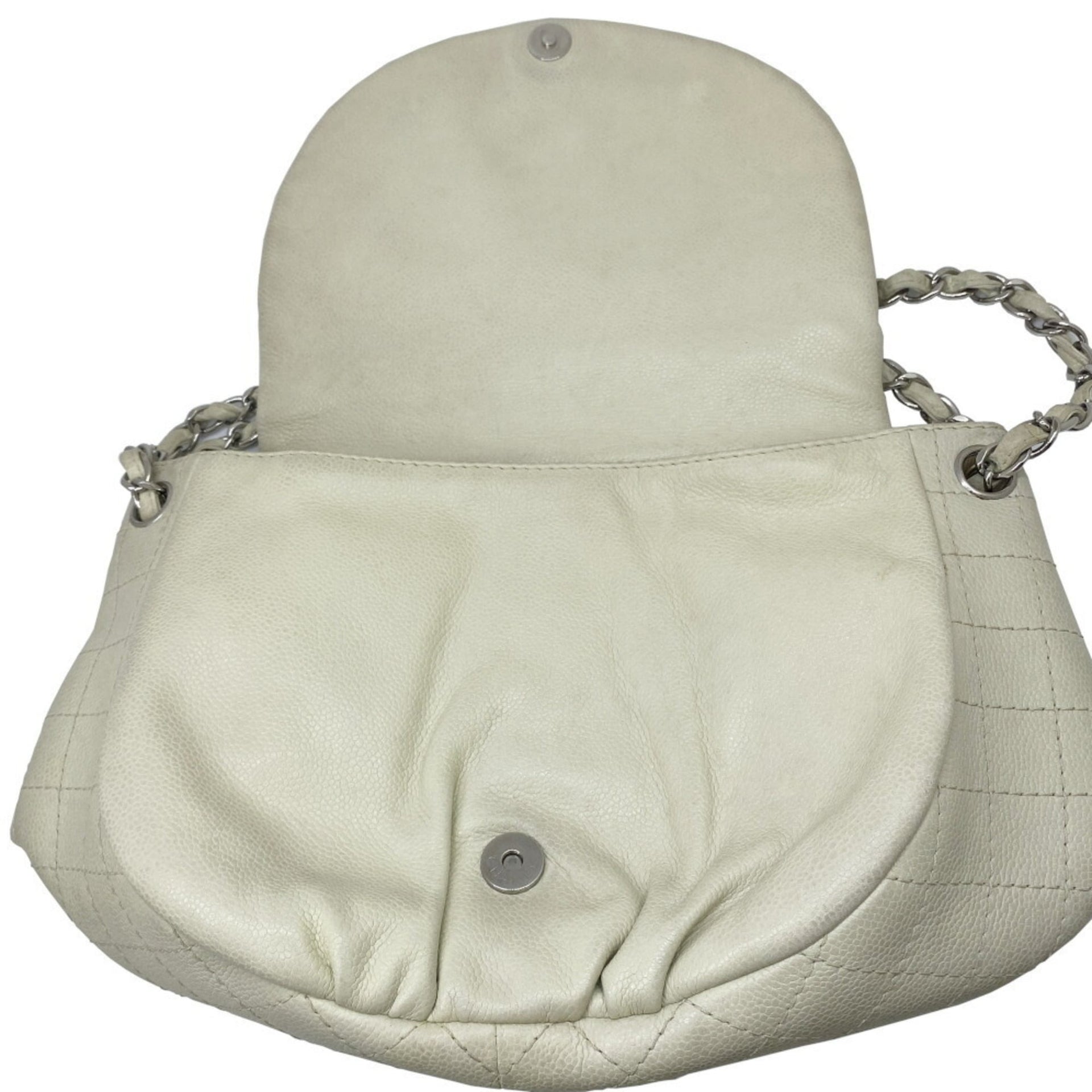 CHANEL Coco Mark Half Moon Chain Shoulder Bag Ivory Caviar Skin Off-White Women\'s