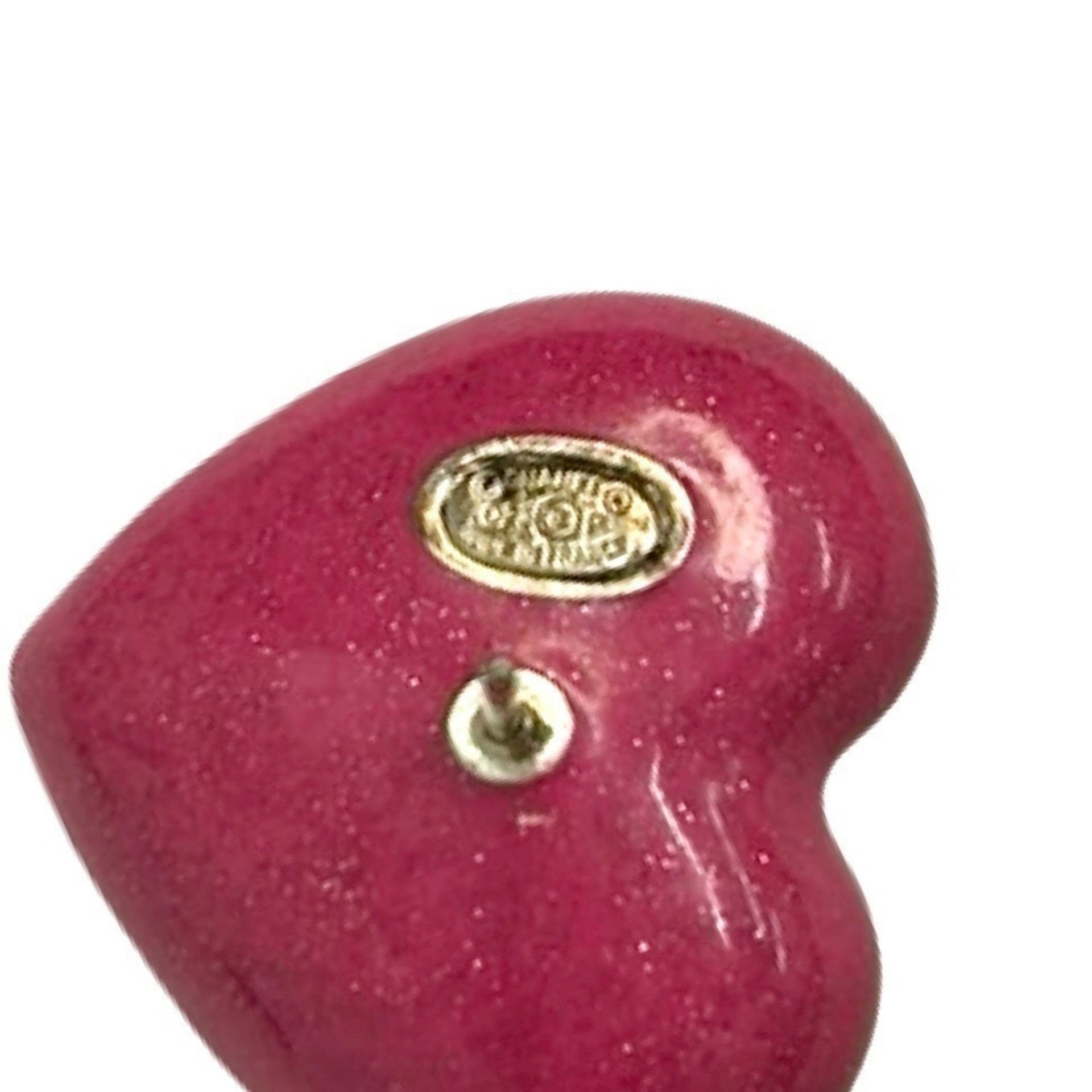 CHANEL Coco Mark Heart Rhinestone Metal Earrings, Gold and Pink, 63508