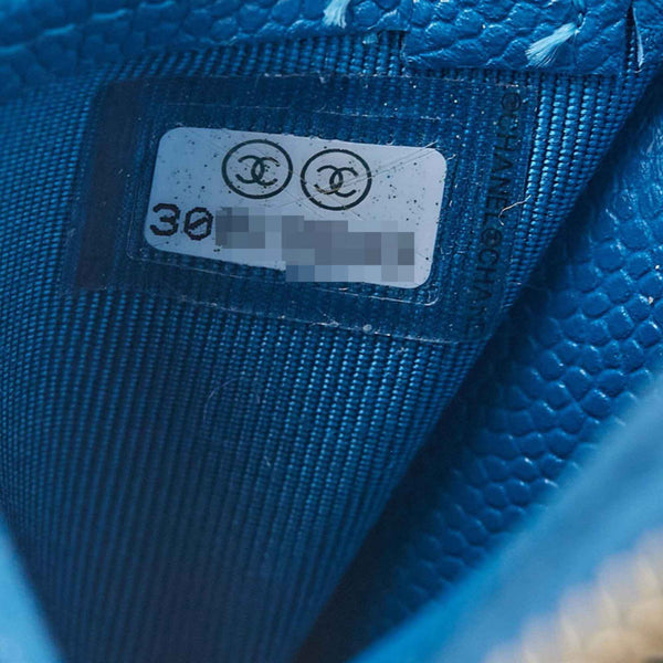 CHANEL Coco Mark Matelasse Round Zip Wallet/Coin Case in Blue Caviar Leather for Women