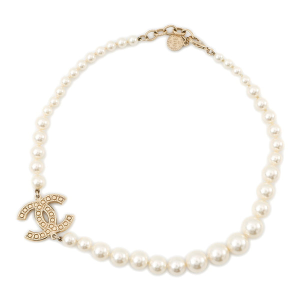 Chanel Coco Mark Necklace, Faux Pearl, Metal, Rhinestone, 100th Anniversary, F24, V, A64757, CHANEL