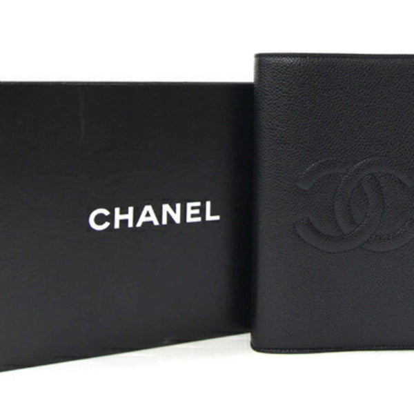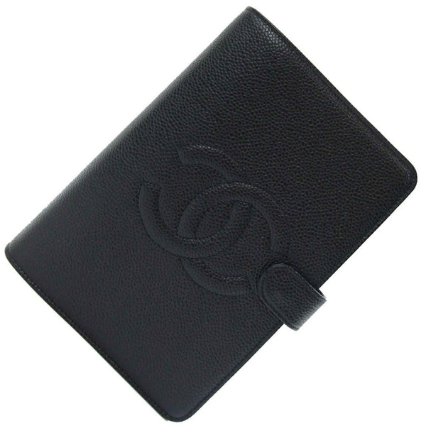 CHANEL Coco Mark Notebook Cover A07013 Black Caviar Leather for Women