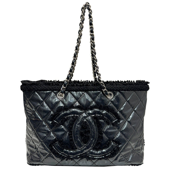 CHANEL Coco Mark Patent Toilette Fanny Tweed Chain Tote Bag Shoulder Vinyl Black 7156 W 13 Series Boa