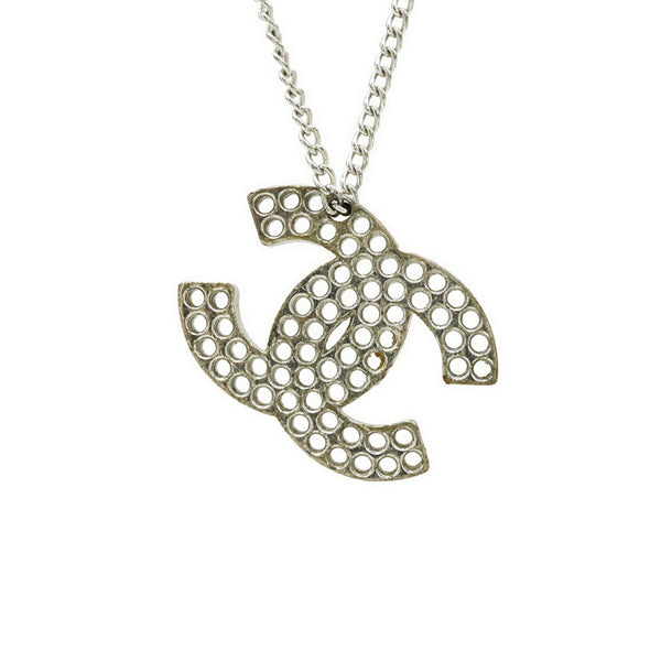 CHANEL Coco Mark Punching Necklace Pendant Metal Silver 03 P