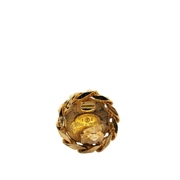 CHANEL Coco Mark Rhinestone Earrings, Gold Plated, Women\'s