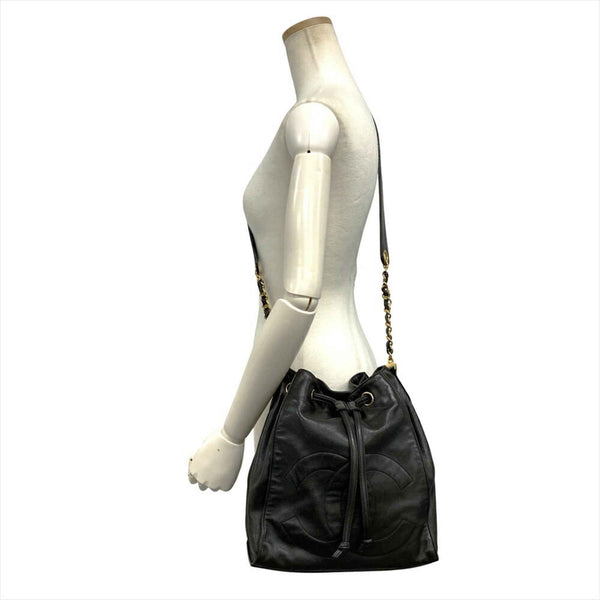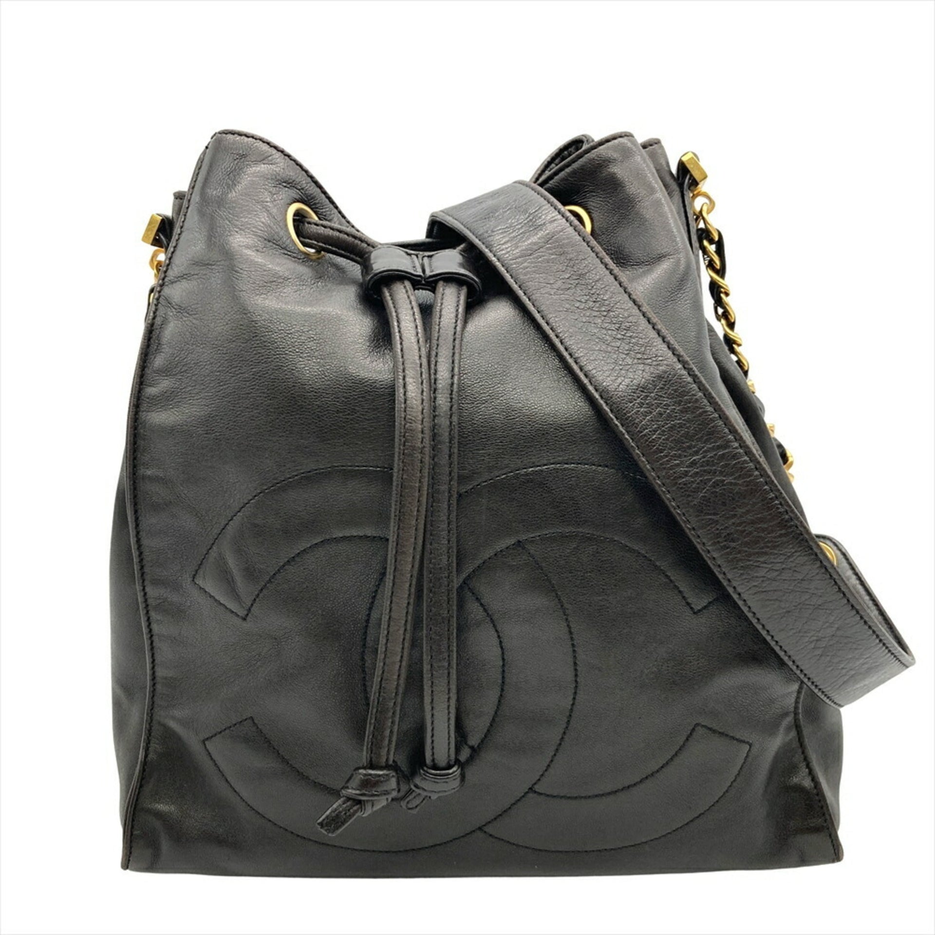 CHANEL Coco Mark Shoulder Bag, Leather, Black, No. 3, Women\'s