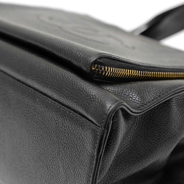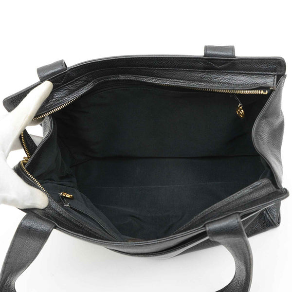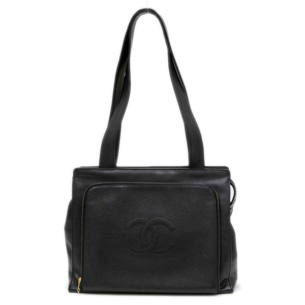 Chanel Coco Mark Shoulder Bag Tote Caviar Skin Black Vintage