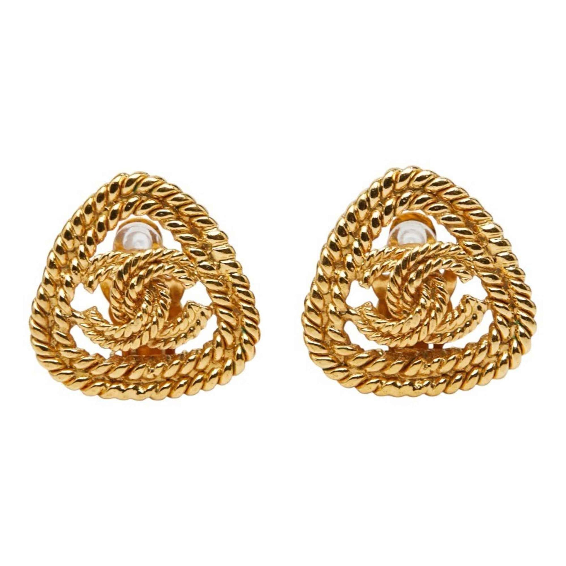 CHANEL Coco Mark Triangle Earrings, Gold Plated, Women\'s