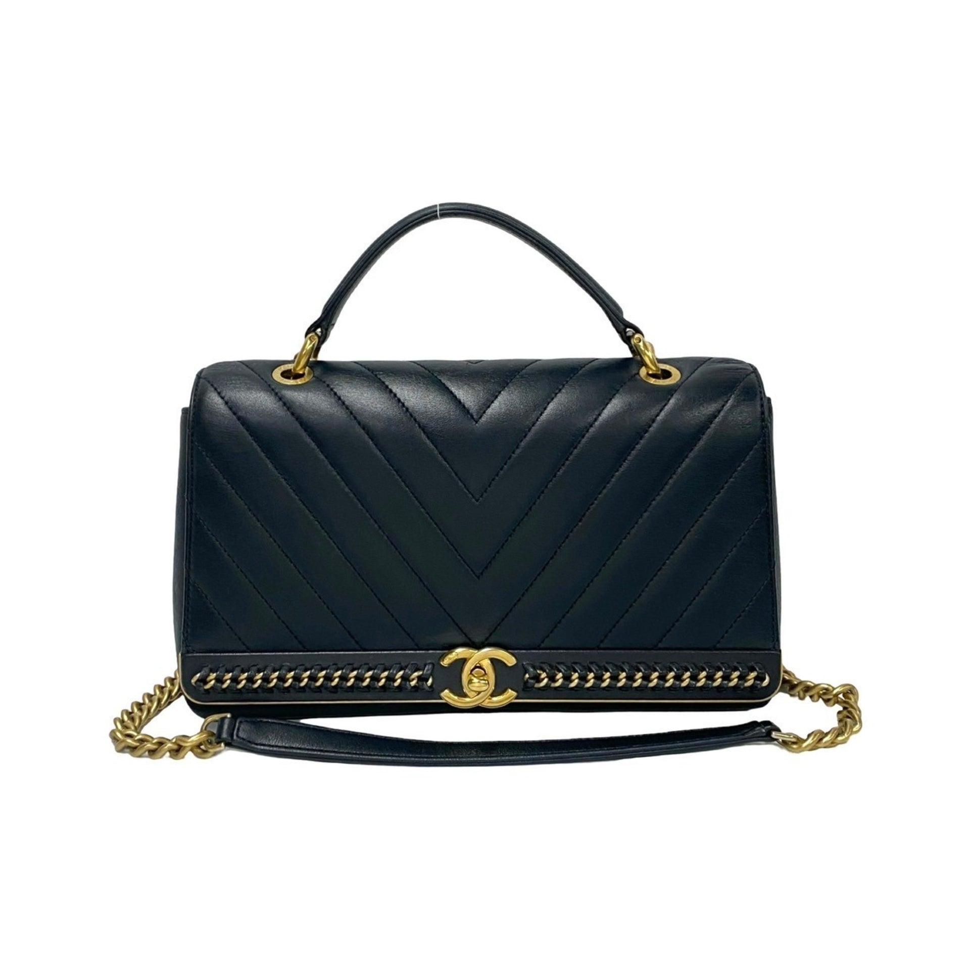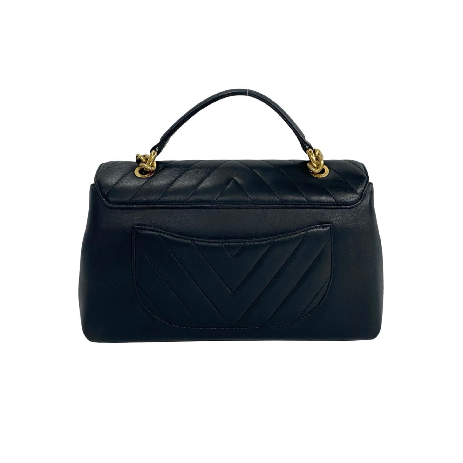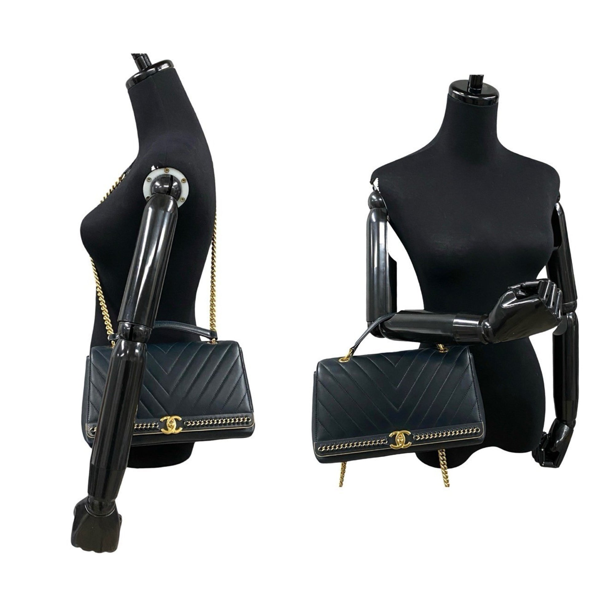 CHANEL Coco Mark V-Stitch Lambskin 2-Way Handbag/Shoulder Bag, Navy, 11568