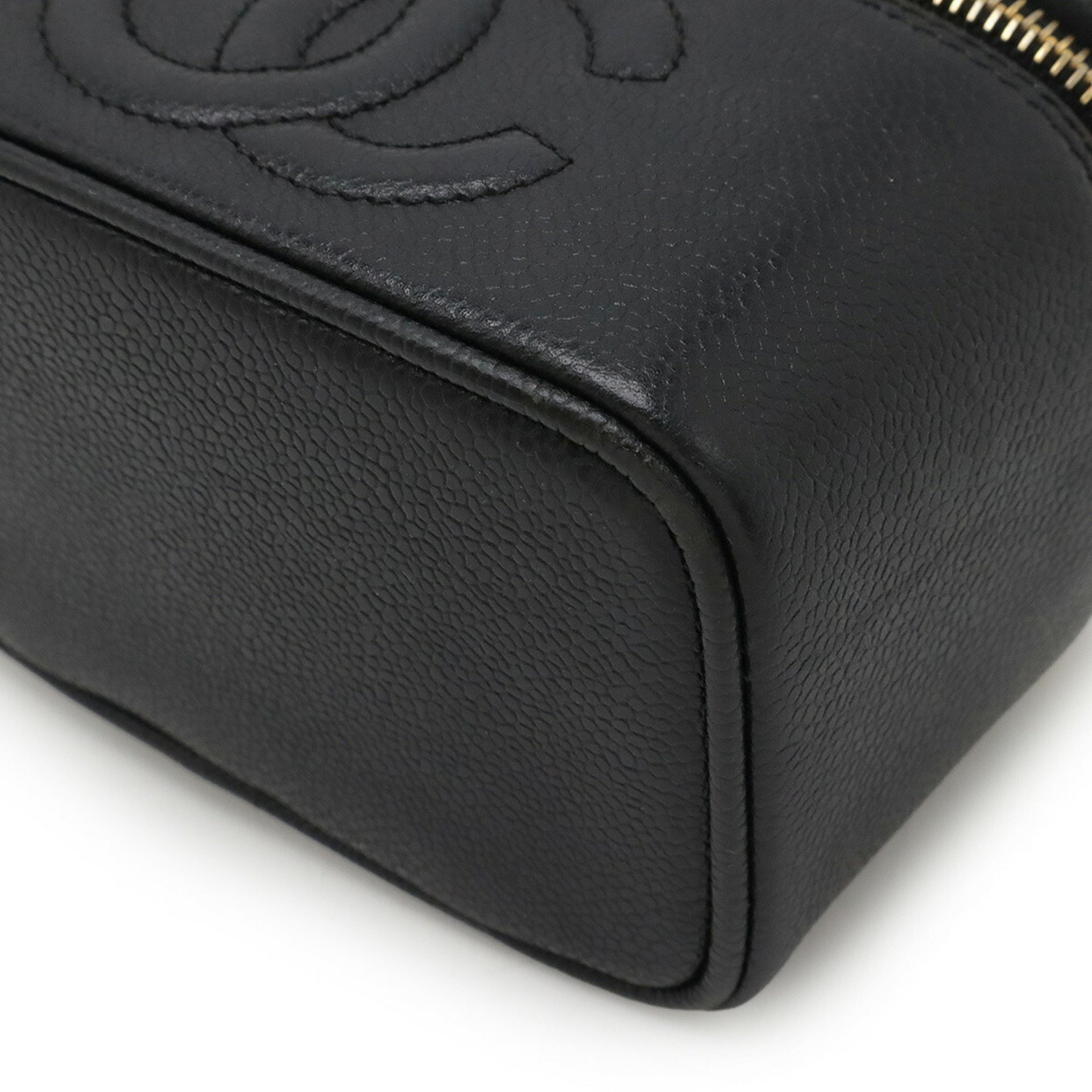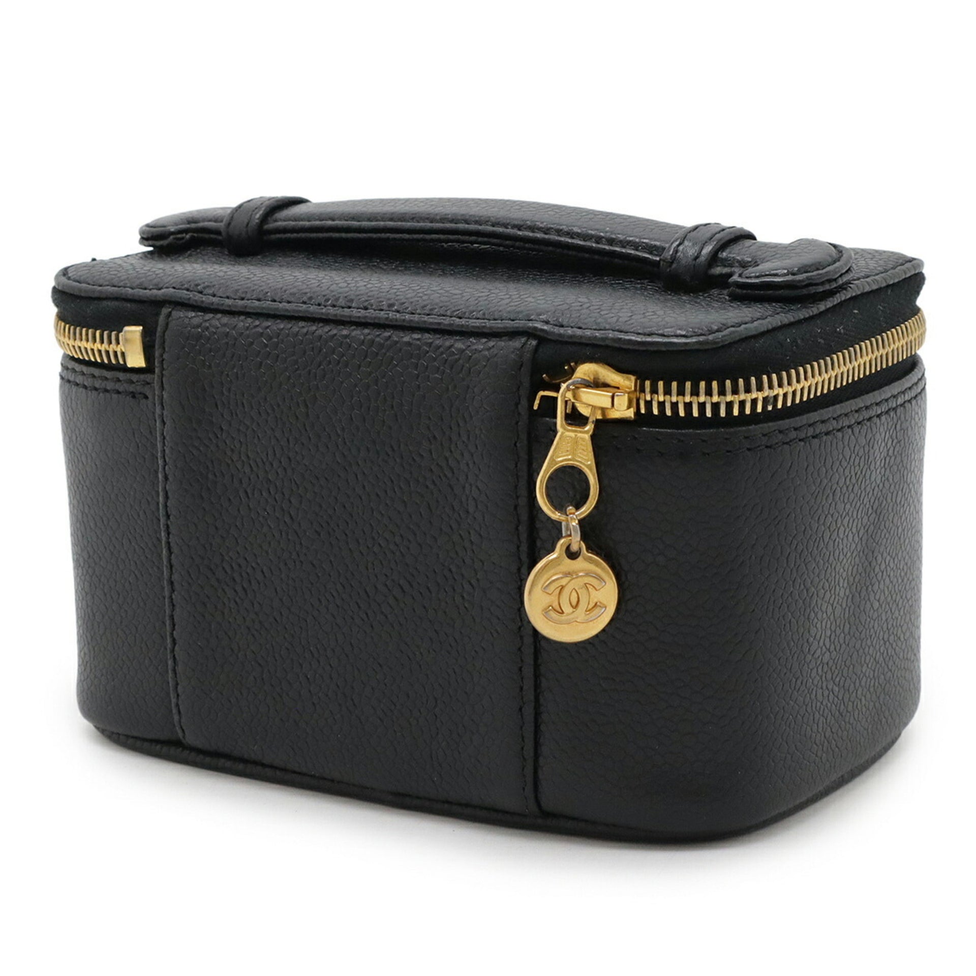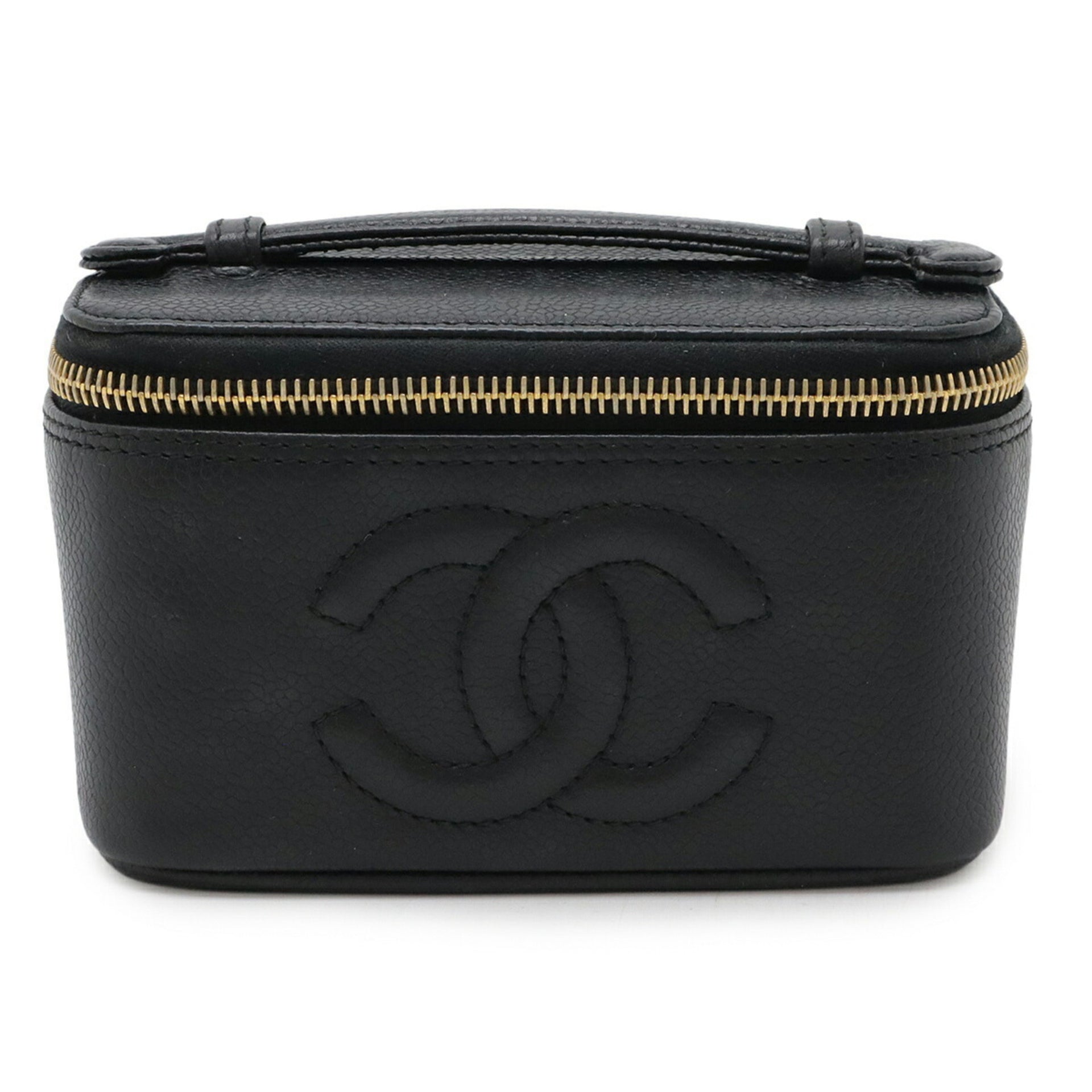 CHANEL Coco Mark Vanity Bag Mini Pouch Caviar Leather Black