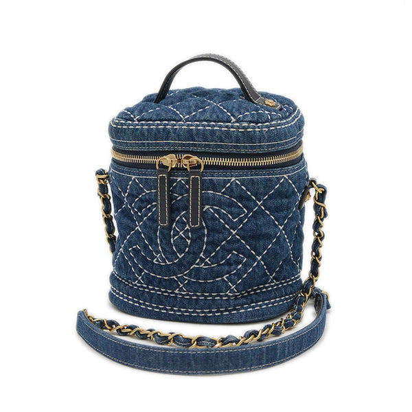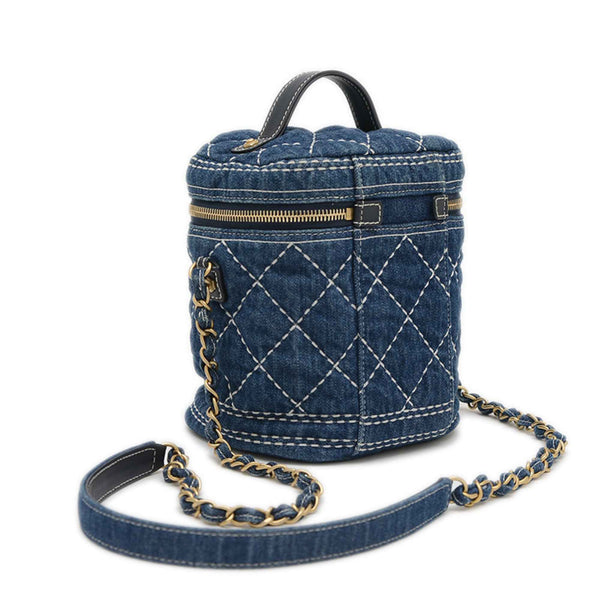 Chanel Coco Mark Vanity Chain Shoulder Bag Handbag Denim Blue AS1336