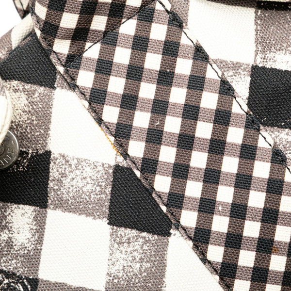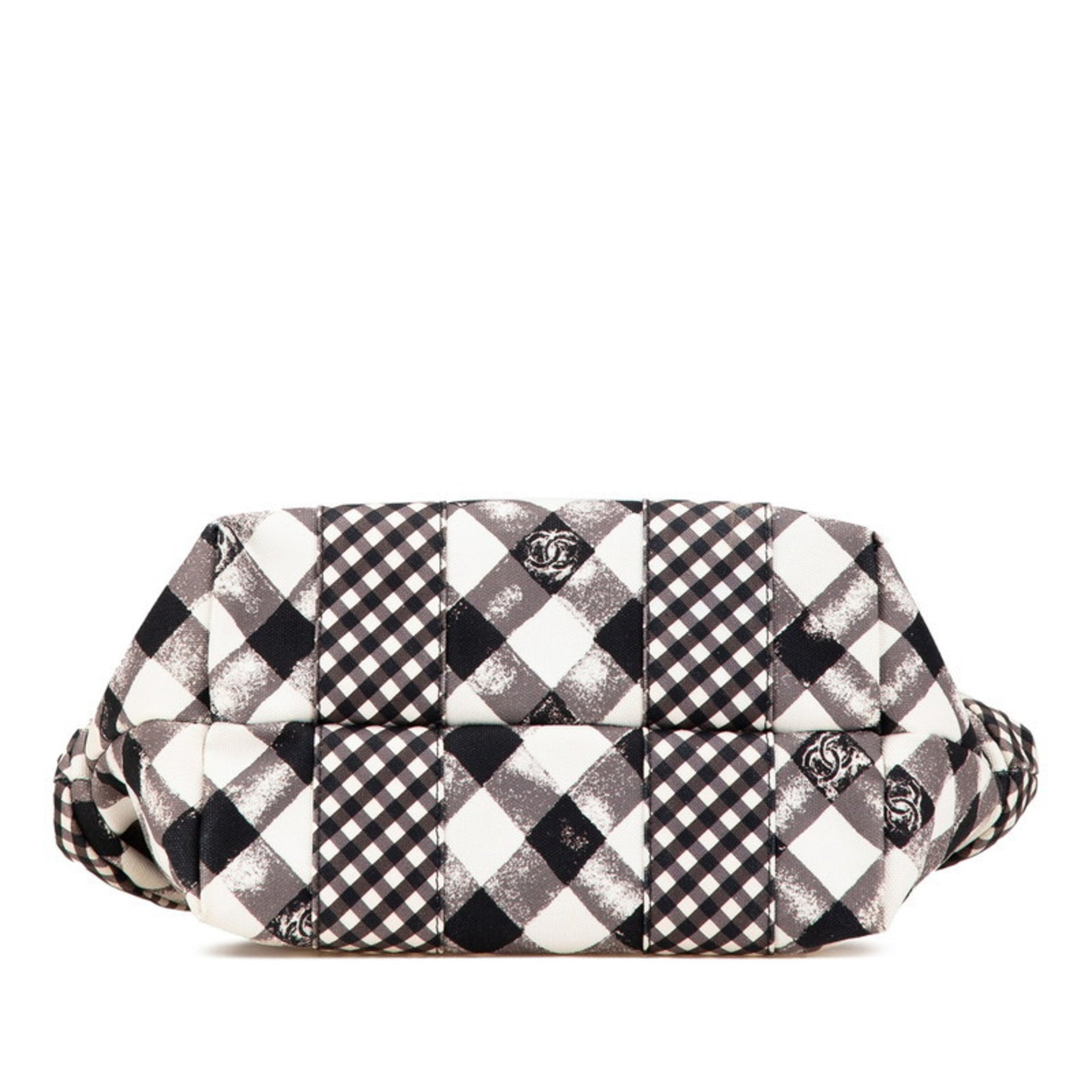 CHANEL Cruise Line Gingham Check Coco Mark Handbag Black White Canvas Leather Women\'s