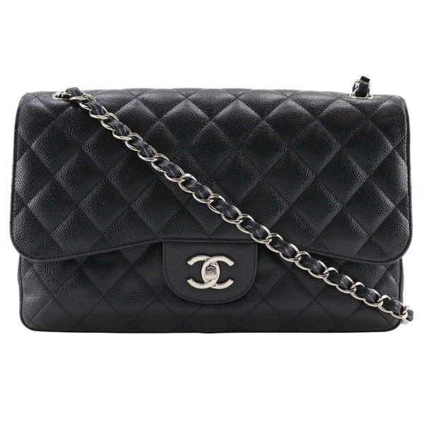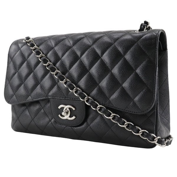 CHANEL Deca Matelasse 30 Shoulder Bag Chain Double Flap A58600 Caviar Skin Black A5 Turn Lock Women\'s