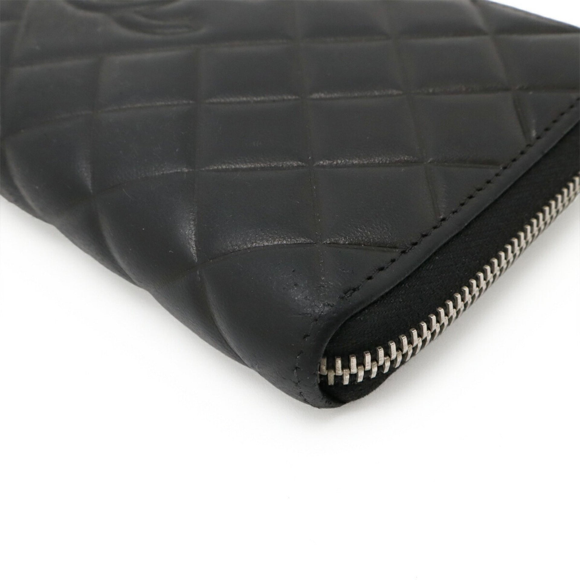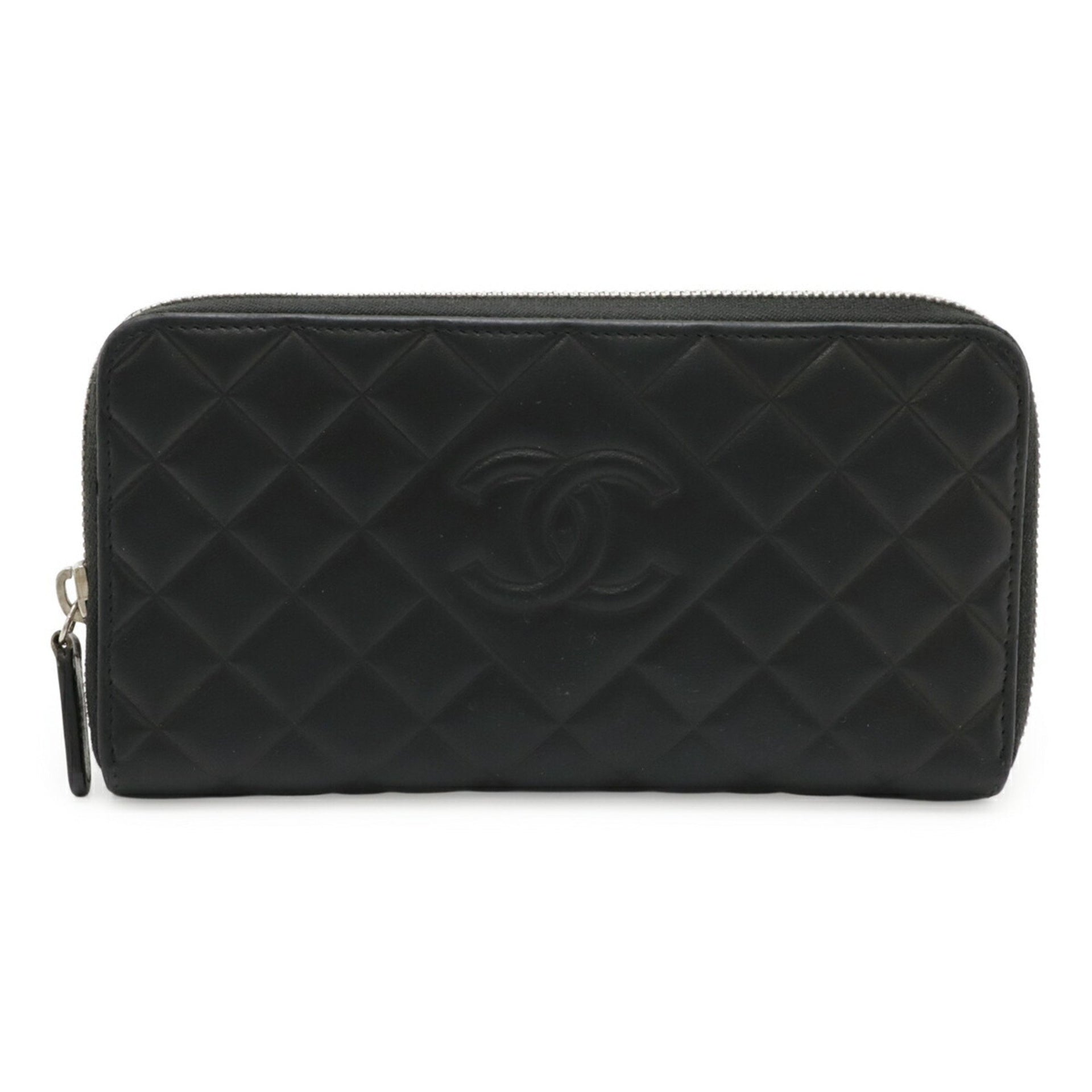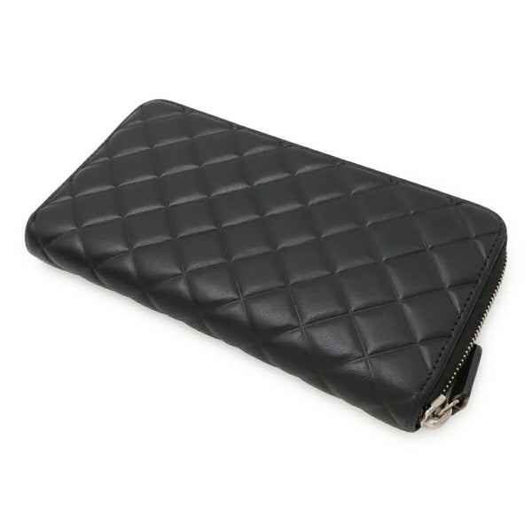CHANEL Diamond Stitch Matelasse Coco Mark Round Long Wallet in Black Leather (A80110)