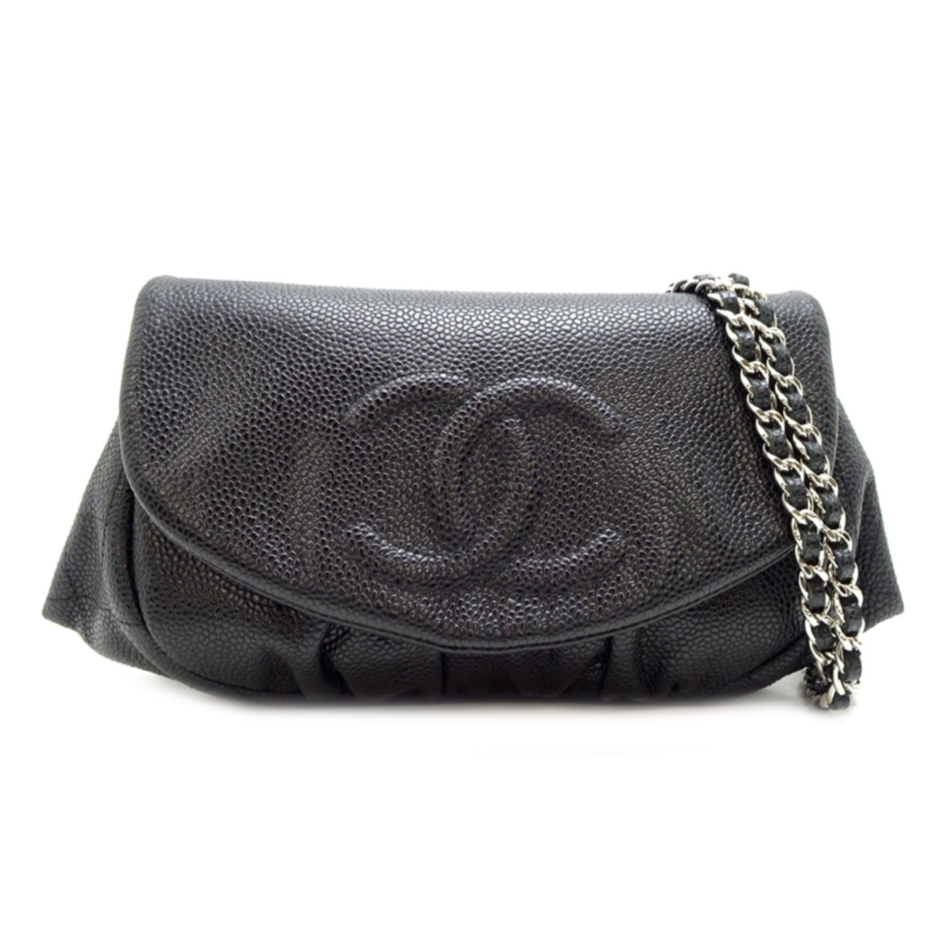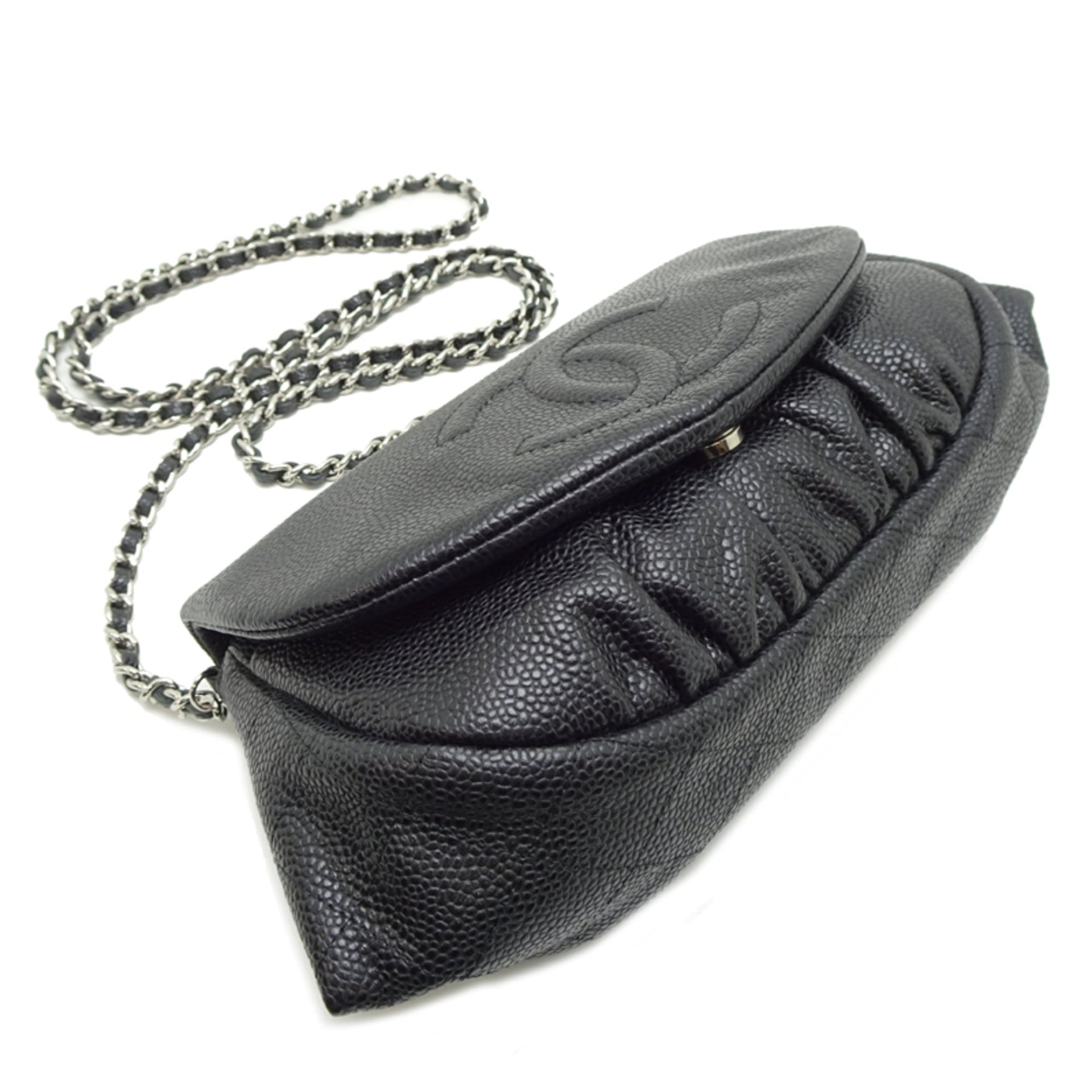 Chanel Half Moon Chain Wallet Women\'s Shoulder Bag A40033 in Black Caviar Leather