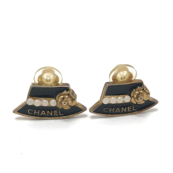 CHANEL Hat Motif 02A Earrings GP Women\'s Black