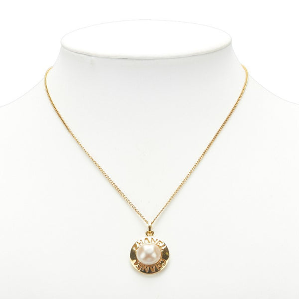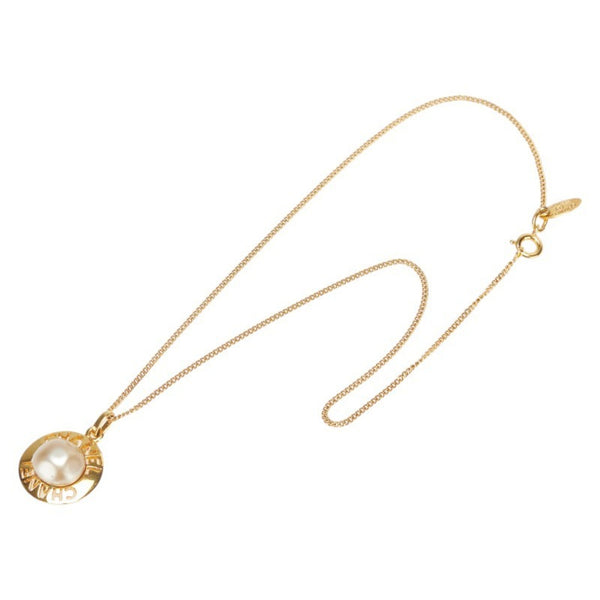 CHANEL logo pearl necklace, gold plated, women\'s