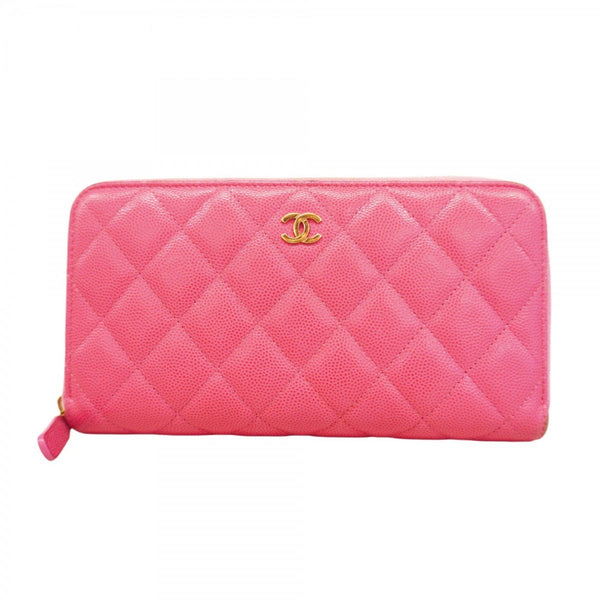 Chanel Matelasse Caviar Leather Long Wallet, Pink, Women\'s, P1624256