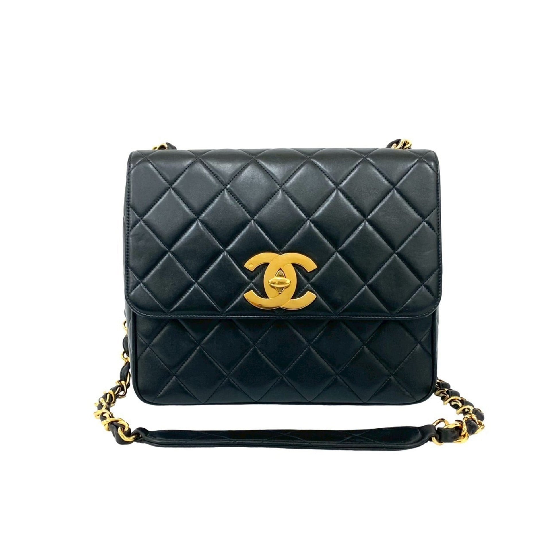 CHANEL Matelasse Coco Mark Lambskin Leather Chain Shoulder Bag, Black, 713-3