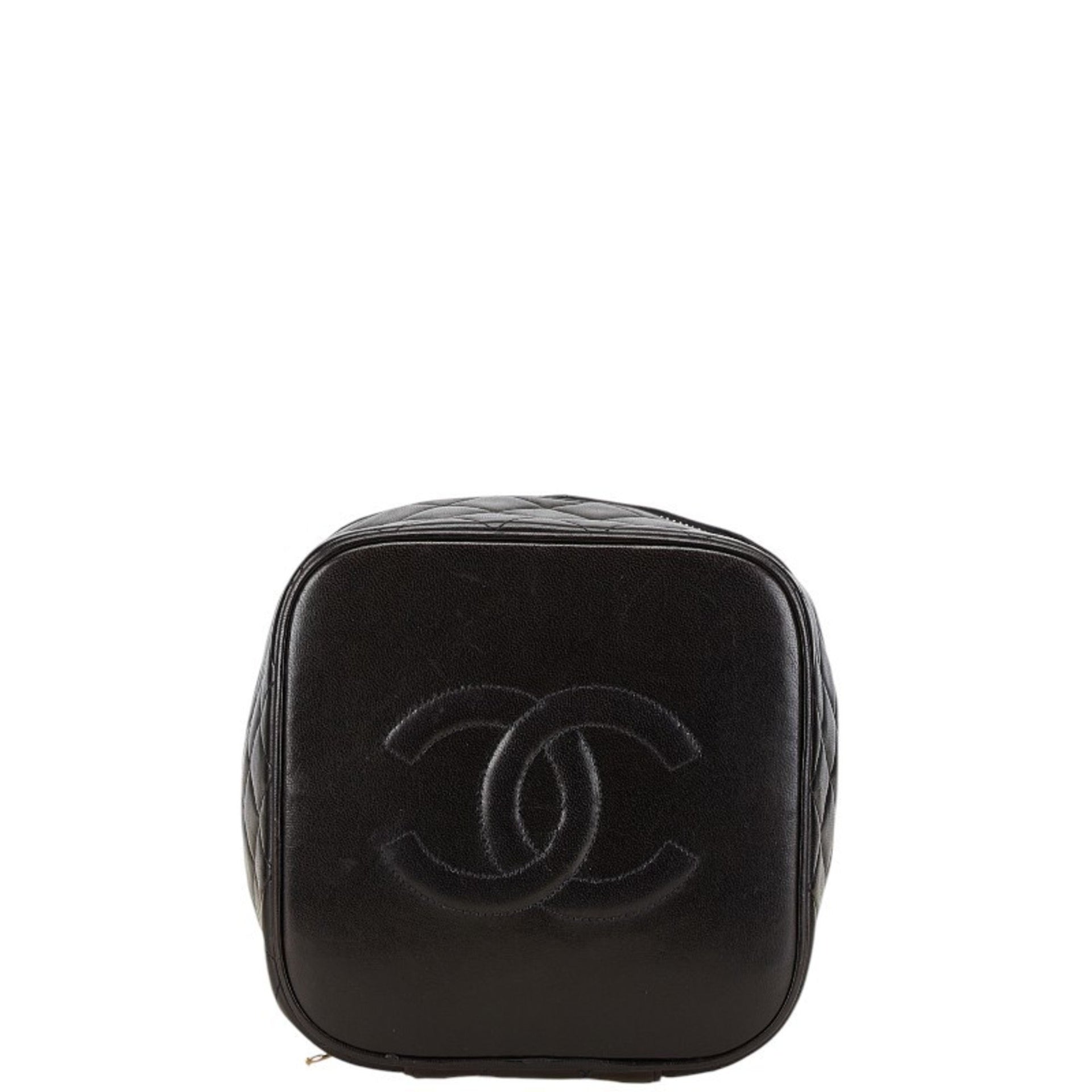CHANEL Matelasse Coco Mark Vanity Bag in Black Lambskin for Women