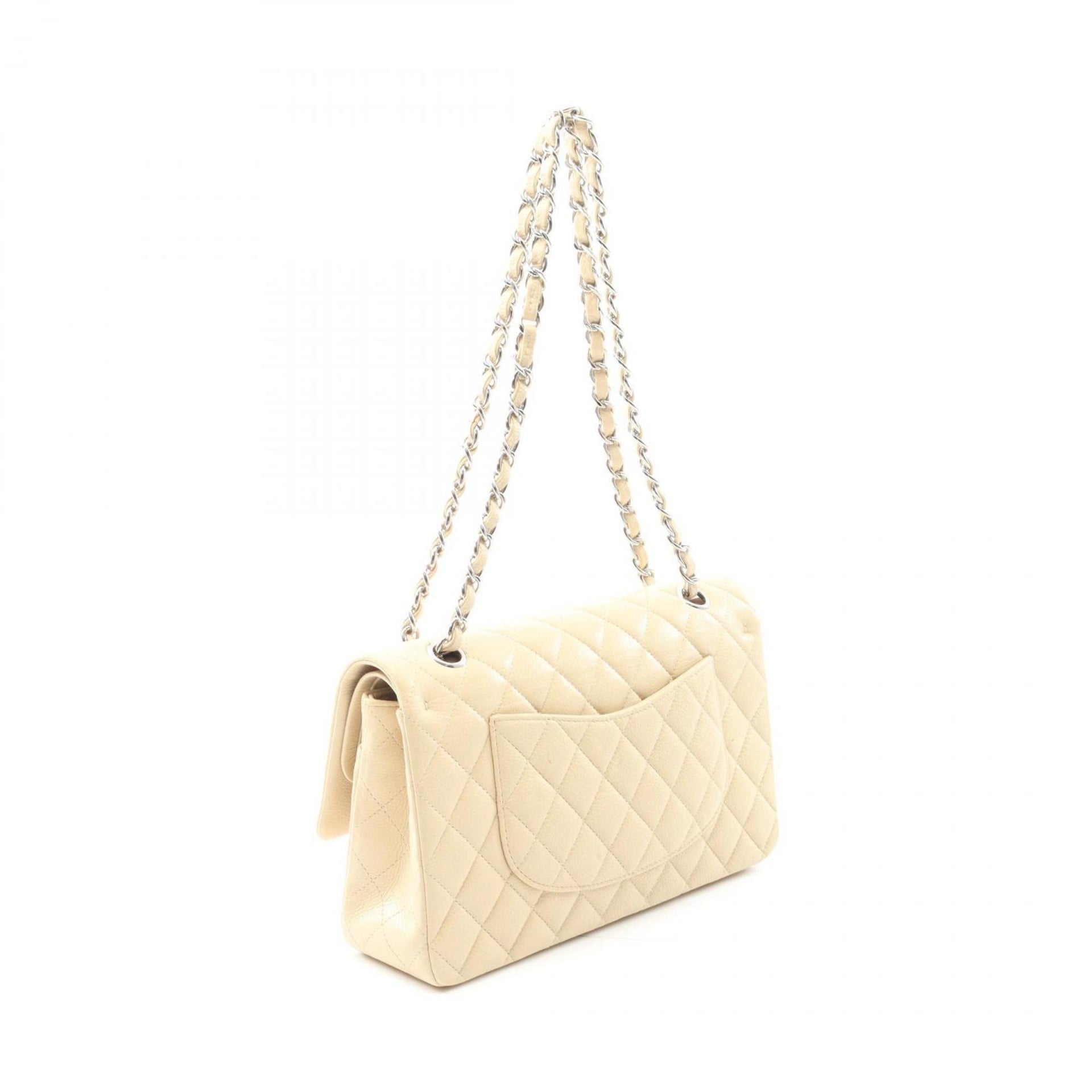 CHANEL Matelasse Double Flap Shoulder Bag in Grained Calfskin Leather, Beige, Women\'s, A01113