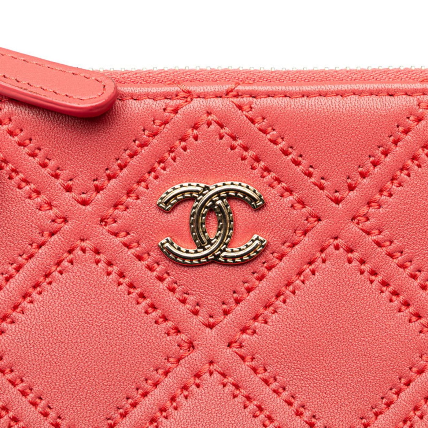 Chanel Matelasse Double Stitch Coco Mark Tassel Pouch Pink Lambskin Women\'s CHANEL