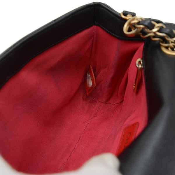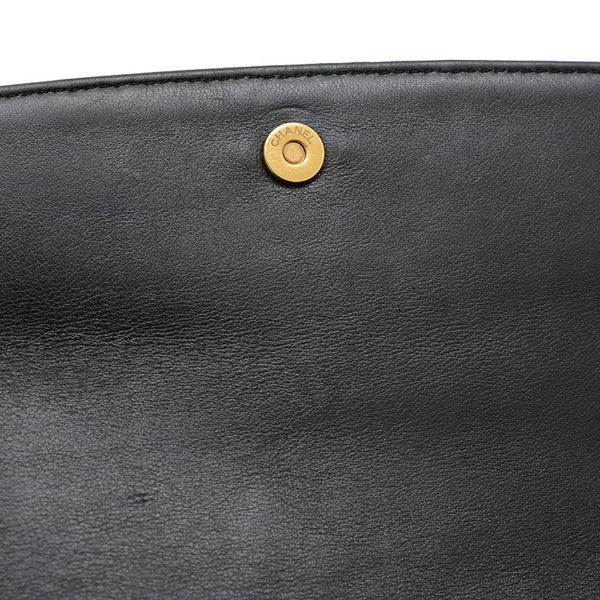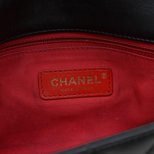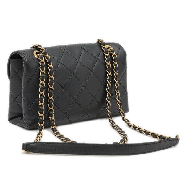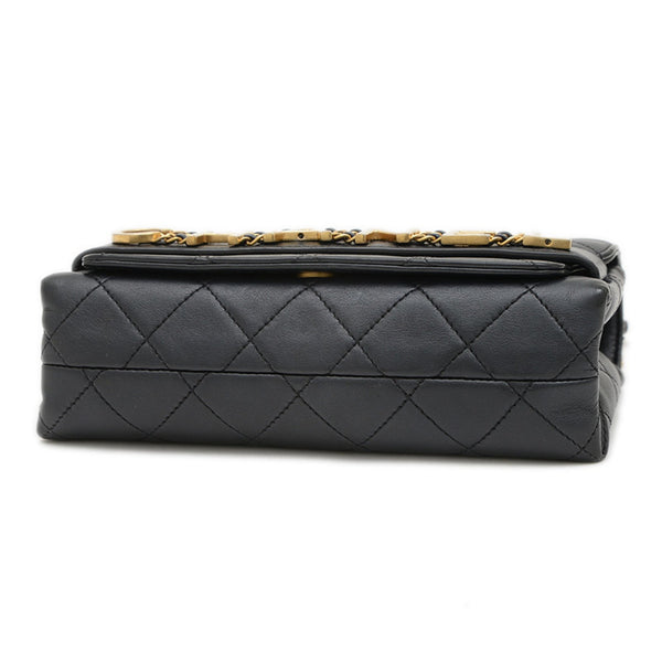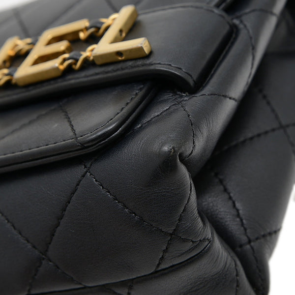 Chanel Matelasse Logo Chain Shoulder Bag in Black Lambskin with Gold Hardware AS4190