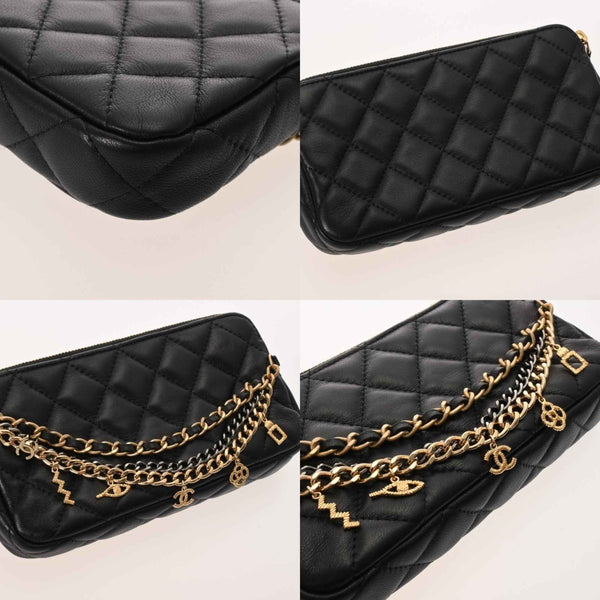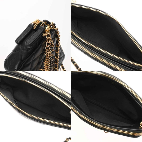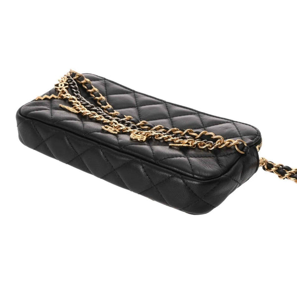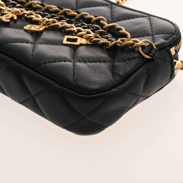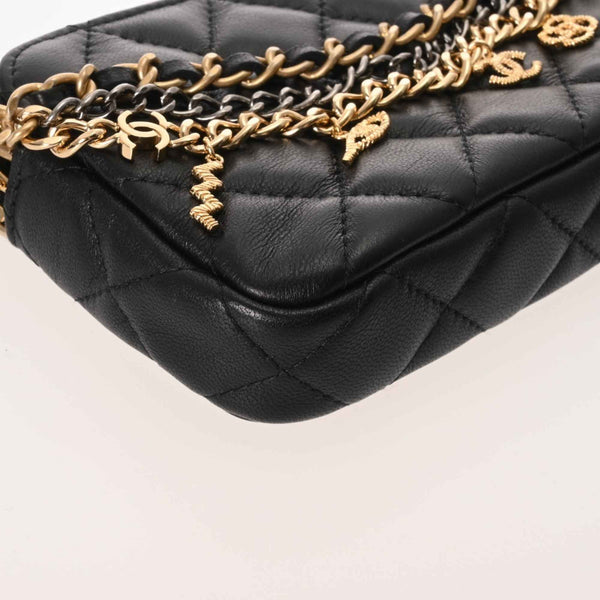 CHANEL Matelasse Phone Case Shoulder Bag with Double Zip, Black, Women\'s Lambskin