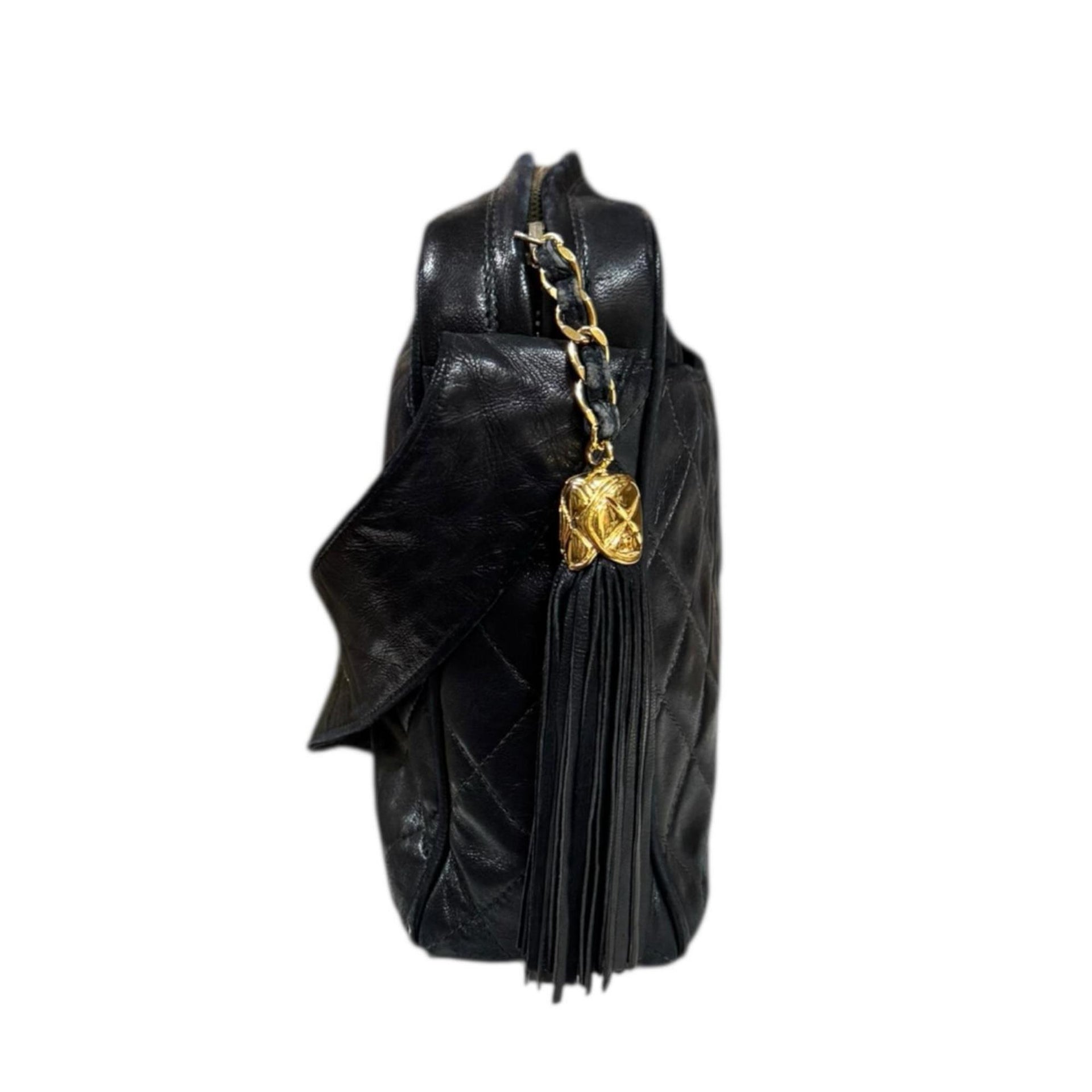 Chanel Matelasse Shoulder Bag, Black Lambskin, Women\'s, CHANEL Tassel