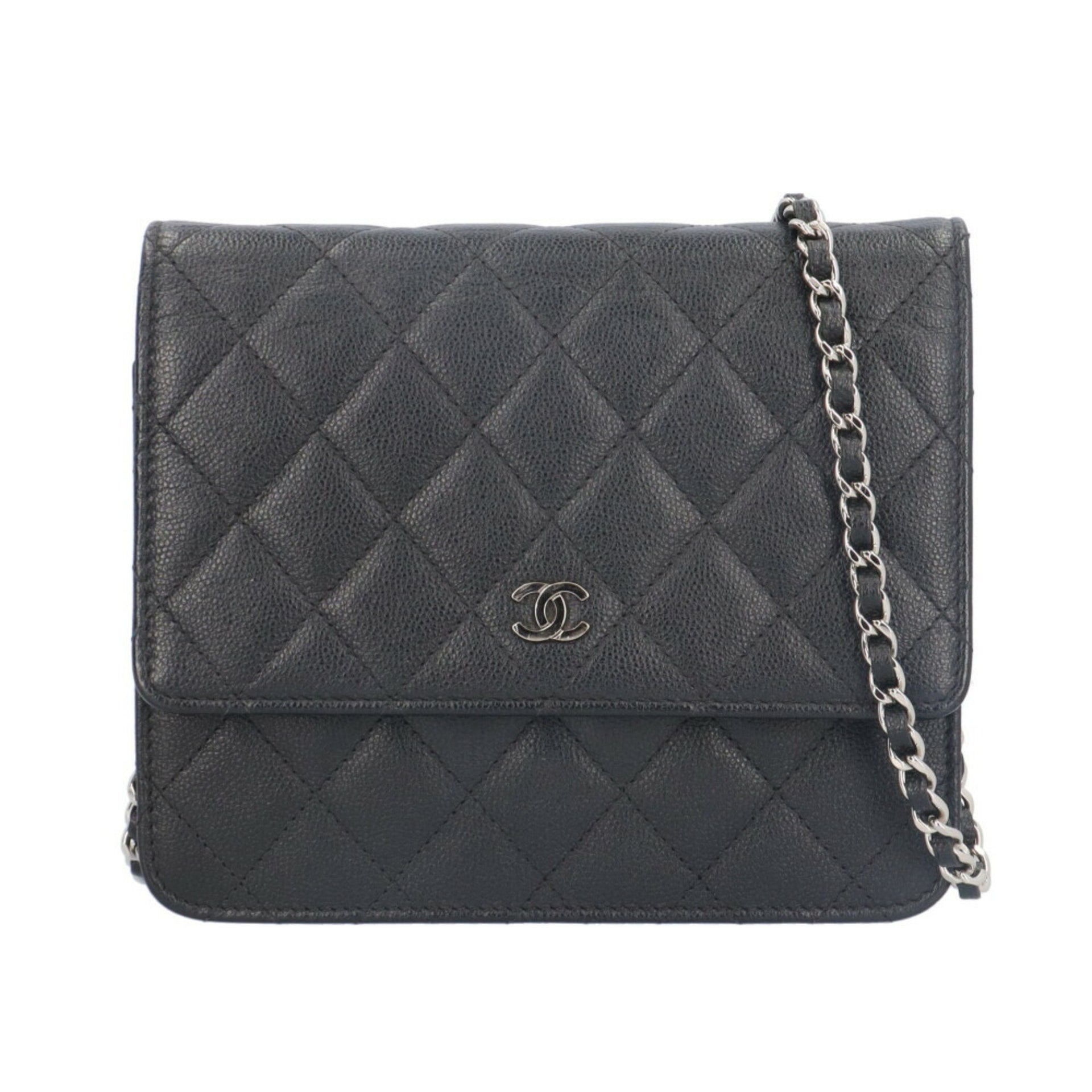 Chanel Matelasse Shoulder Bag in Black Caviar Skin, Women\'s, and Chain Wallet
