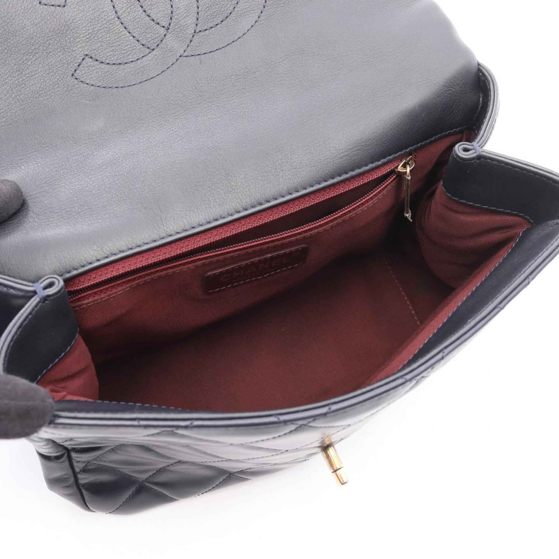 CHANEL Matelasse Top Handle Shoulder Bag in Lambskin Leather, Navy Blue