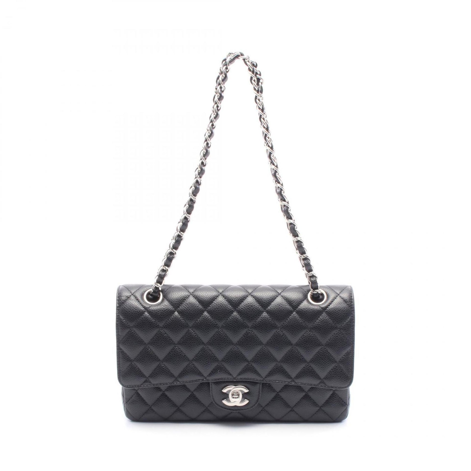 CHANEL Matelasse W-flap Shoulder Bag Caviar Skin (Grained Calf) Women\'s Black A01112