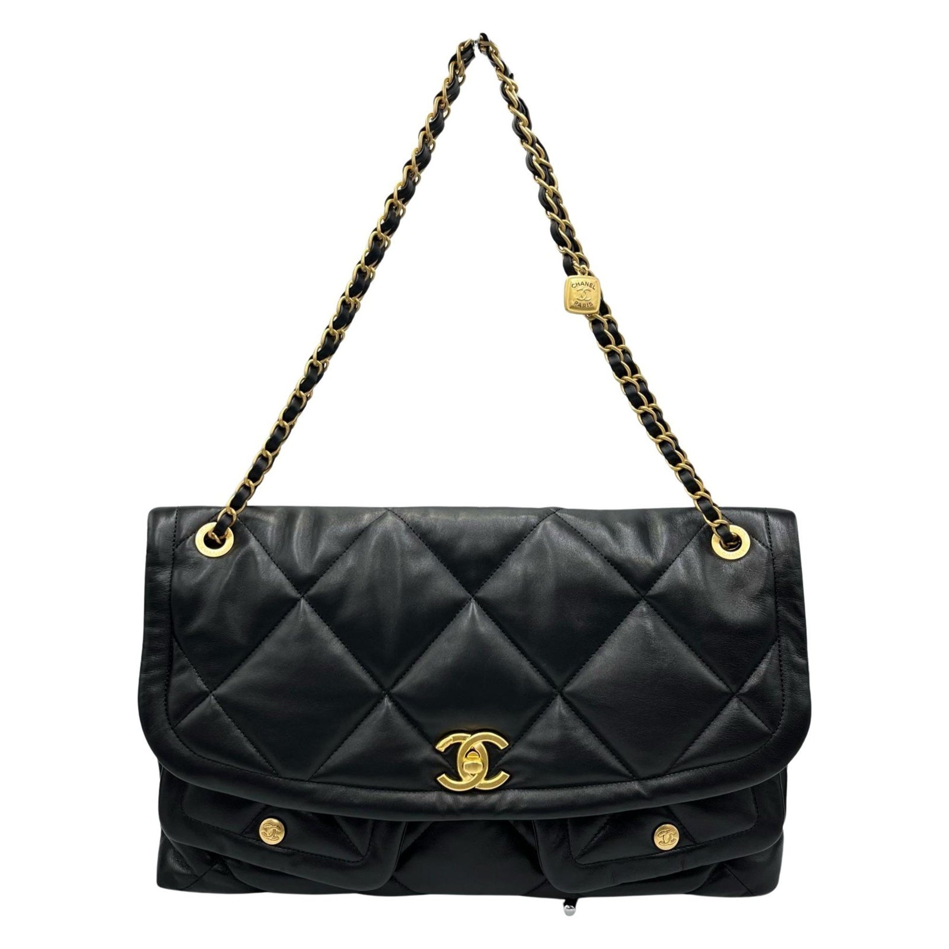 CHANEL Maxi Handbag in Lambskin, Black, Women\'s