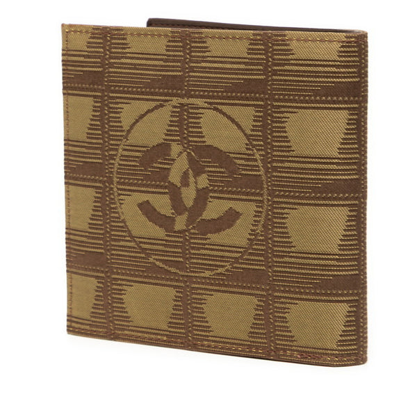 Chanel New Travel Line Coco Mark Bifold Wallet Khaki Nylon Leather Women\'s CHANEL